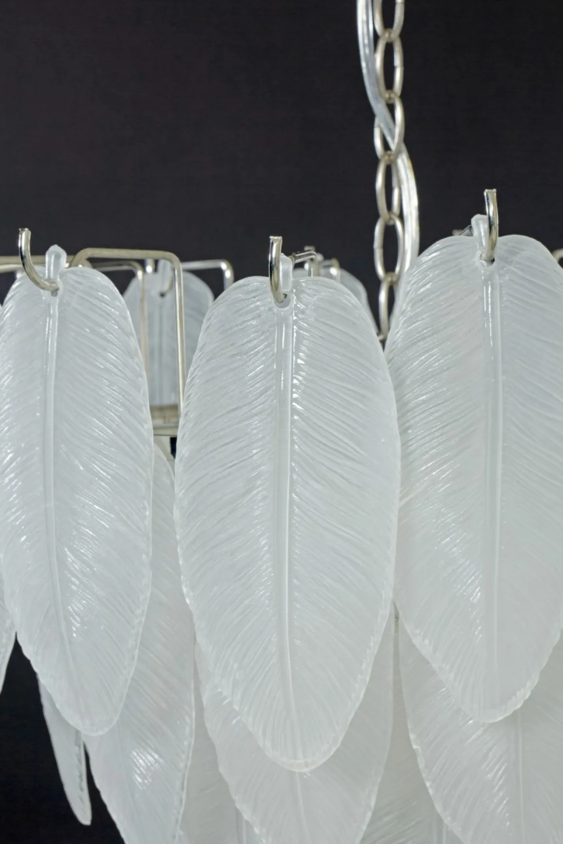 Aneta Belysnings Adriana taklampa utstrålar elegans i silverfärgad metall med frostat glas i fjäderform. Skapar vacker, effektfull ljusspridning – perfekt som dekorativ och funktionell belysning i matsal, kök eller vardagsrum. Tidlös design som lyfter inredningen med stil och ljus. Välj Adriana för en exklusiv touch i ditt hem.