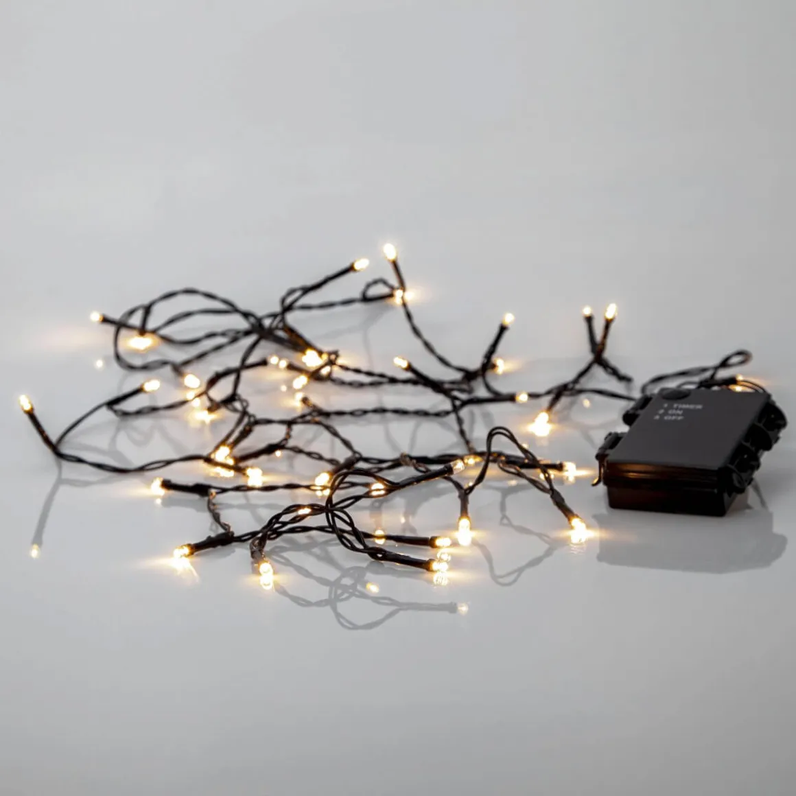 Batterifriven slinga för utomhusbruk på 2,8 meter med 40 stycken varmvita små dioder. Självklart har underverket en inbyggd timer som gör det enkelt för dig att ställa in när det ska lysa.