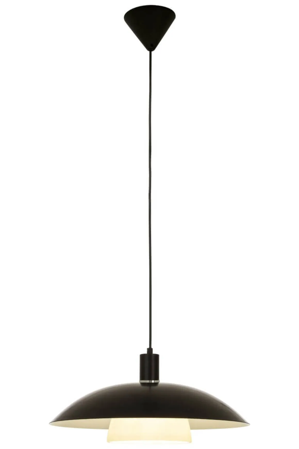 Alfa svart är en klassiskt takpendel med modern touch som passar bra över finbordet såväl som matbordet i köket. Dekorringar både i krom och matt mässing medföljer så att du enkelt själv kan välja vilken du vill använda. Takkopp i svart plast för krokupphäng med kopplingsplint. Extra stort matbord? Använd då gärna två lampor i rad. Takkontakt köpes separat.