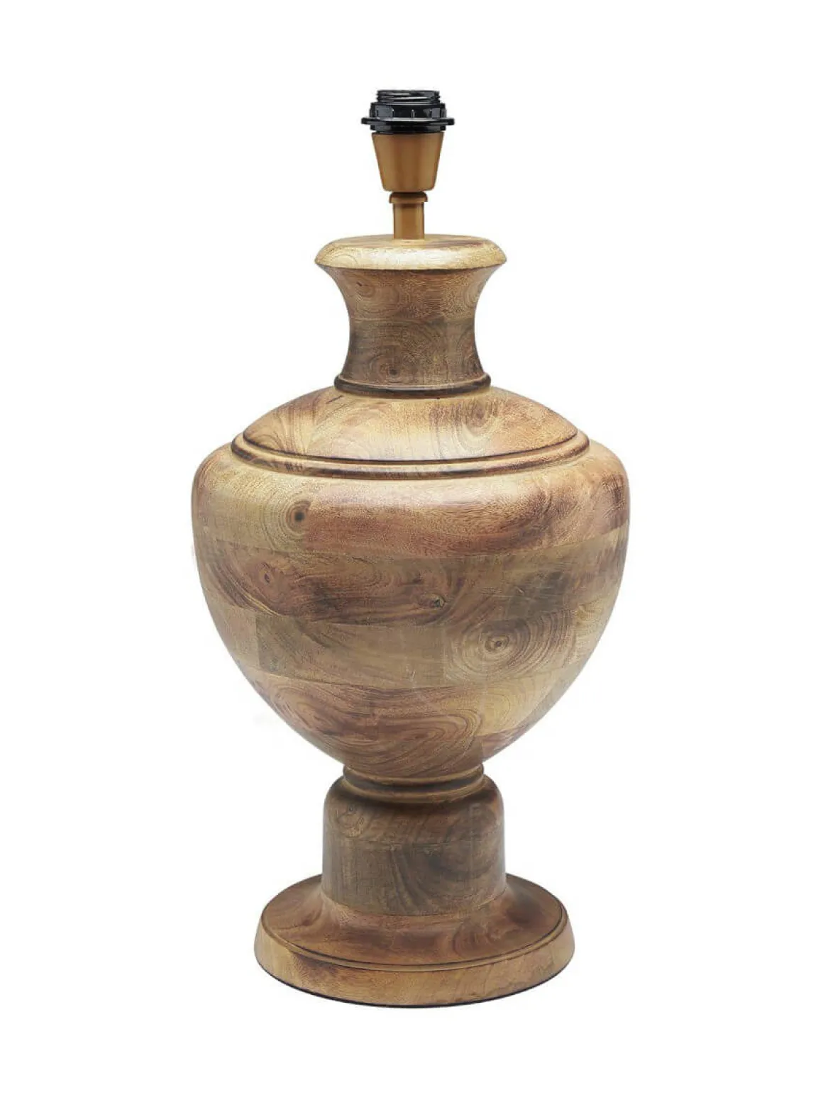 Lampfot Alma (54cm) från PR-Home, klassiskt urnformad lampa i läckert mango trä. Brun bränd finish. 1,8m svart plastsladd med strömbrytare ca 30cm från lampan. Passar utmärkt med en skärm som har runt 30cm i diameter.