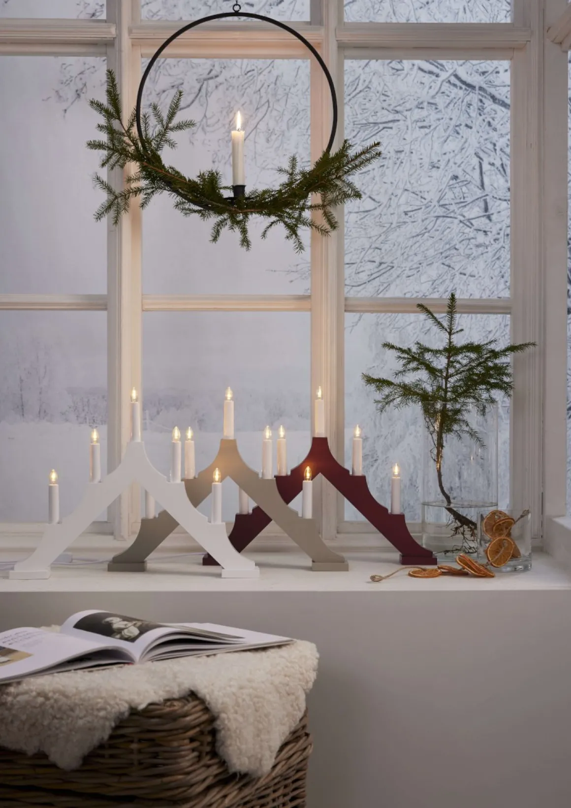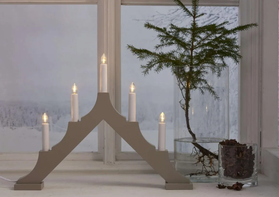 Beige adventsljusstake i trä, med klassisk design och modern touch. Den ger en fin ljusbild som skapar perfekt julstämning i ditt fönster. Ljusstaken är FSC®-märkt, vilket innebär att den är tillverkad av hållbart och ansvarsfullt skogsbruk. En tidlös dekoration som passar in i alla hem under julhelgen.