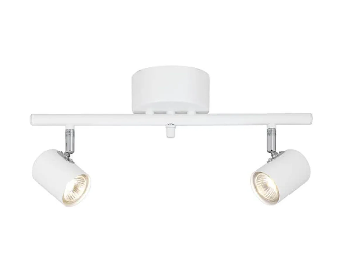 Vit rak taklampa med 2 spot från Cottex serien Alpha! En populär serie med spotlights, när enkelhet är bäst!