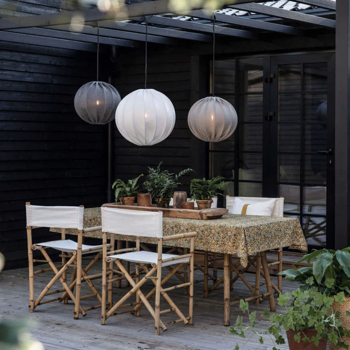 Låt vardagsrummet flytta ut! Skapa en härlig och mysig utemiljö med PR-Homes Outdoor takskärmar. Passar lika bra i uterummet som på terrassen. Denna fina takskärm är gjord i ett vädertåligt tyg och har en stomme i galvaniserat stål, som klarar att hänga ute oavsett väder. Alva finns i 3 storlekar och 3 färger, här ser du grå 50 cm.