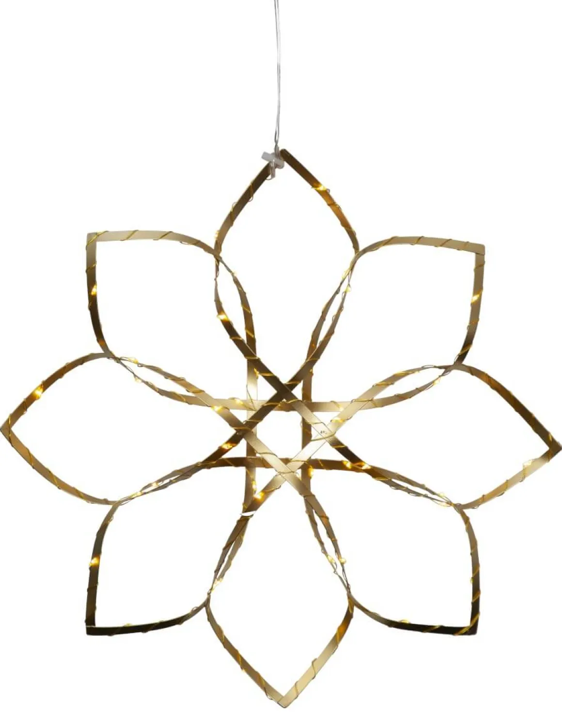 Men hallå ja så vacker stjärna i mässingsfärgat metallband från Star Trading. Stjärnan är endast till för inomhusbruk. Stjärnan har 48 LED-ljuskällor med varmvitt behagligt sken. Fin dekoration att hänga i fönstret eller mot en vägg till advent och jul.