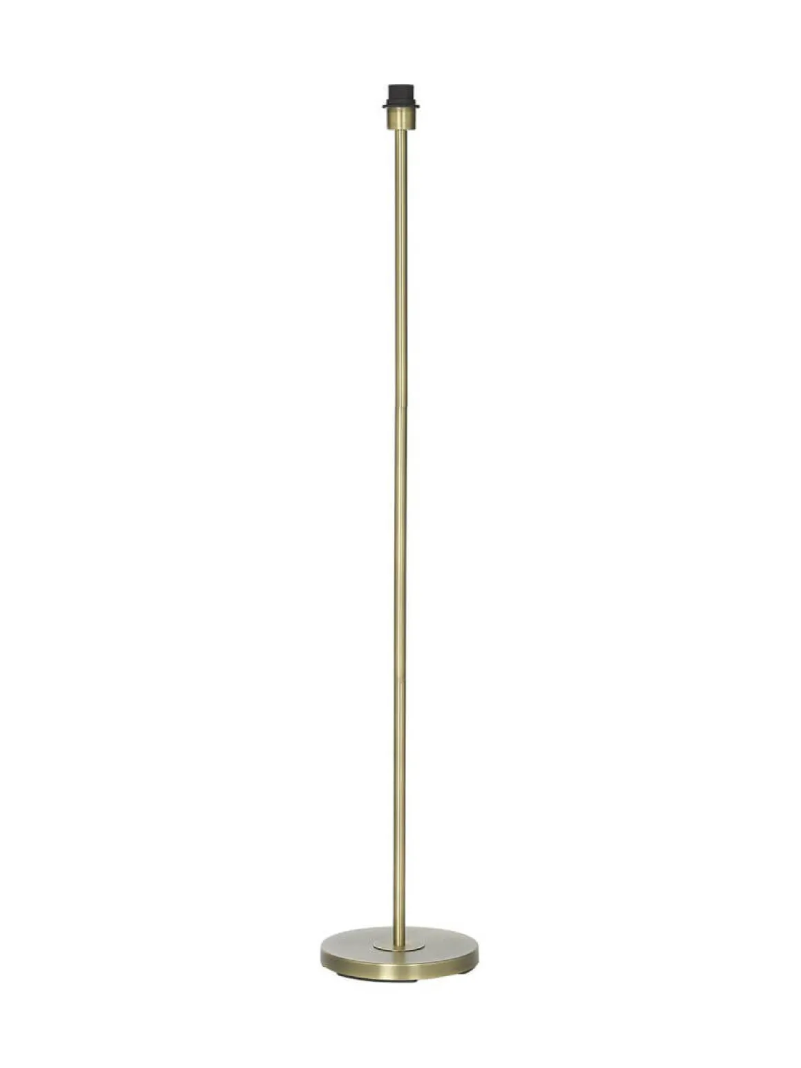 Golvlampa Amy i antikmässing från PR-Home. En strålande baslampa där strömbrytaren sitter på övre delen som har en E27 lamphållare. Golvfoten tycker vi passar med skärmar med E27 fäste och en omkrets på mellan 35 och 50 cm men det är givetvis du själv som väljer. 190 cm plastkabel med väggkontakt.