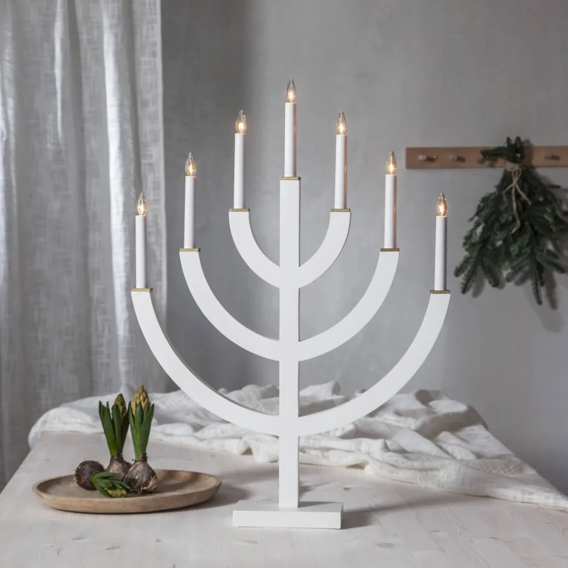 Stämningsfull adventsljusstake i vit trä från Star Trading. Anno ärtillverkad i trä med målade träbrickor i guld som dekoration. Ljusstaken är både moderna och traditionell och passar utmärkt i ett fönster eller på en byrå. Julen blir något alldeles extra med stämningsfulla Anno som dekoration.