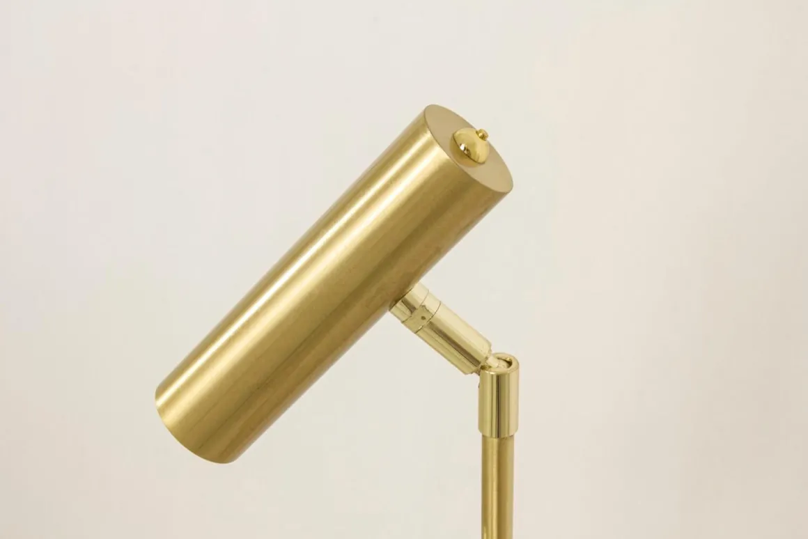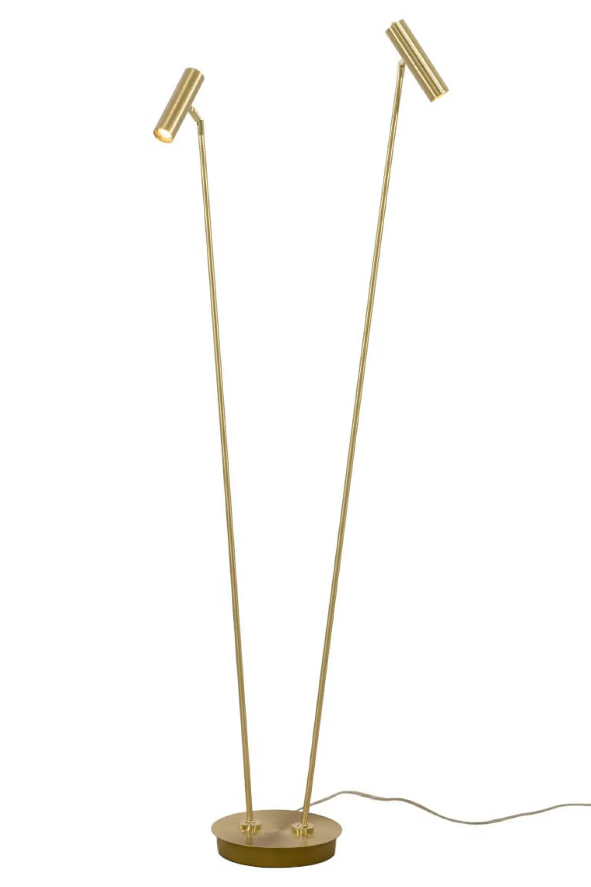Artic dubbel golvlampa i läcker matt mässing från Aneta belysning. En strålande läslampa som är riktbar både nere i foten och uppe vid läshuvudet. Dessa fiffiga funktioner bidrar till en läcker och stilren design med många användningsområden. Självklart har Artic även en inbyggd dimmer placerad på toppen av respektive lamphuvudet så den är lätt att nå, lysande!