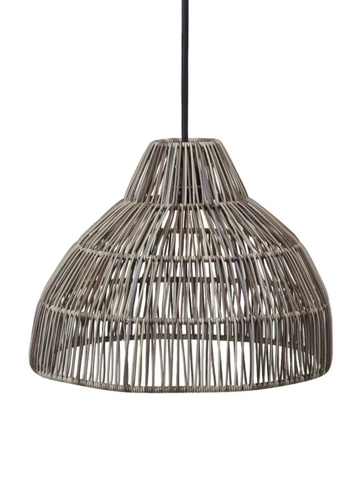 Bao, en grå utomhusskärm i konstrotting från PR-Home.Konstrotting är ett tåligt material som klarar vårt nordiska klimat. Den flätade strukturen skapar ett vackert ljusspel där ljuset tränger sig igenom. Komplett med takupphäng för utomhusbruk. Höjd 30cm, 40cm i diameter.