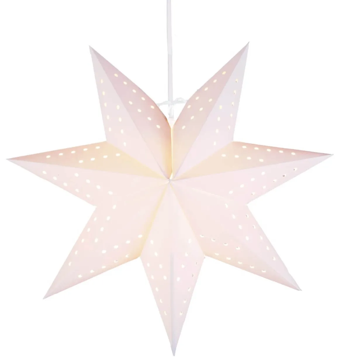Bobo vit pappstjärna från Star Trading, är en prisvärd liten stjärna med fina detaljer som levereras komplett med 3,5 meter kabel (dock utan ljuskälla)
