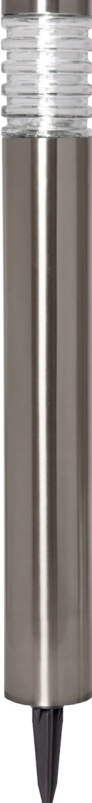 Bologna solcellspollare från Star Trading i en större modell, mäter 10×80 cm och är tillverkad av hållbart stål och glas. När mörkret faller avger den ett behagligt ljus med cirka 20 lumen genom det randiga glaset. Både markspjut och fäste för montering på plattor eller trall medföljer. En elegant och funktionell ljuskälla som är perfekt för att lysa upp gångar och trädgårdar!