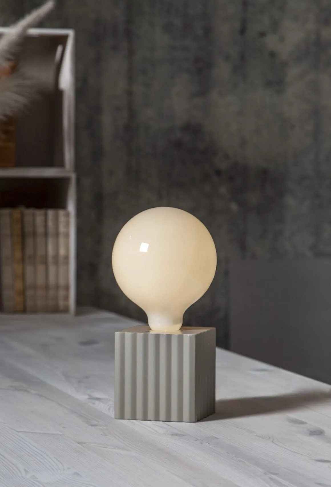 Elefantgrå lampfot med ribbat strukturmönster från välkända Star Trading, tillverkad av trä med E27 sockel. Kombinera lampfoten med en snygg dekorations ledljuskälla för ett elegant intryck. Gör sig bra både på bord och i fönster.