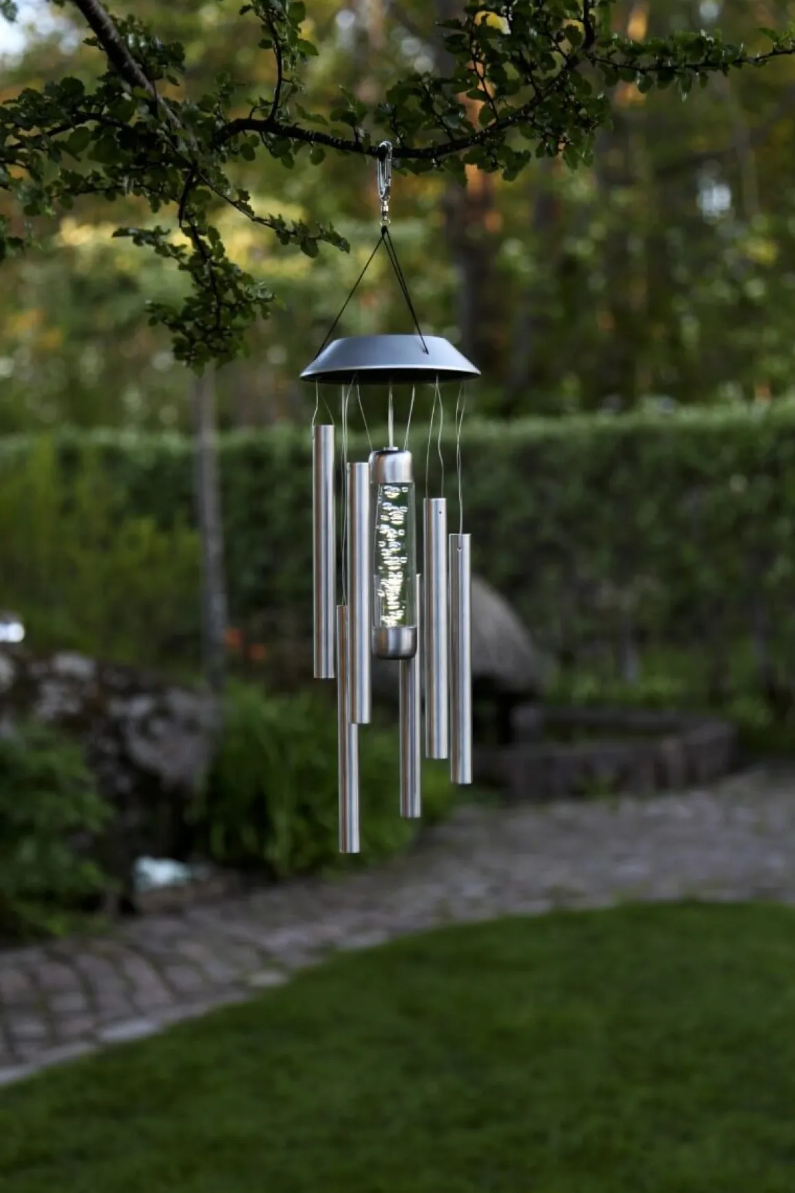 Så Fint dekorerat vindspel som drivs av solen. Placeras som en vacker dekoration i trädgården. Ger ifrån sig ett mysigt sken i mörkret.