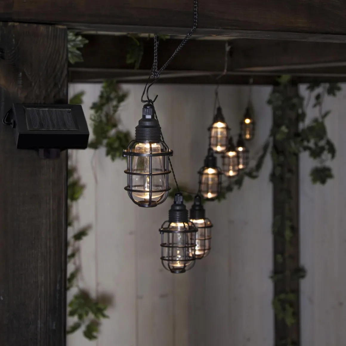 Men åhhh så söt solcellsdriven slinga från Star Trading med åtta små hängande lyktor. Slingans solcellspanel sitter monterad 170 centimeter innan slingan startar, detta gör att du kan montera slingan i skuggan men ändå ha panelen i solen. Lysande!