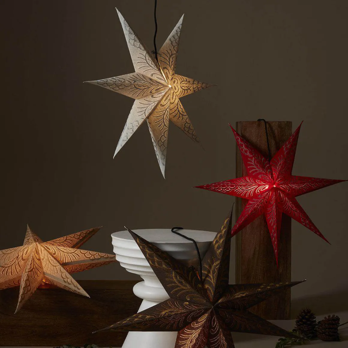 Celeste är en vacker julstjärna från PR-Home tillverkad i papper av en lite kraftigare kvalitet med brodyr i kontrastfärg. Stjärnan stängs med hjälp av band och en dragsko. Celeste finns i fyra härliga färger, här ser du henne i grått. Sladdställ och ljuskälla ingår ej.