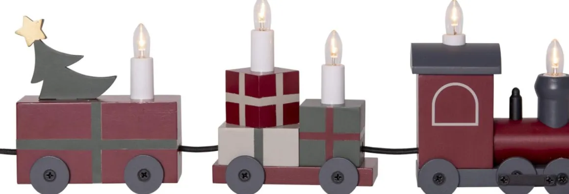 Underbart jultåg i fina färger som sprider julstämning. Tåget lyser med LED-lampor i varje vagn, sammanlänkade med en svart textilkabel. Fin från alla vinklar och skapar en mysig julkänsla. Perfekt att placera på en skänk eller i fönstret. Denna produkt är FSC®-märkt, vilket garanterar hållbart skogsbruk.