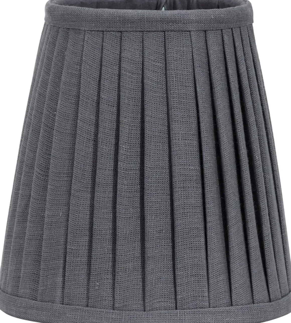 Cia är en klassiskt formad lampskärm för framförallt golvlampor men passar även tak/vägg och bordslampor med E27 sockel som kräver en skärm med Toppring. Cia finns i en mängd härliga färger och mönster här ser du henne med plisserat grått tyg.
