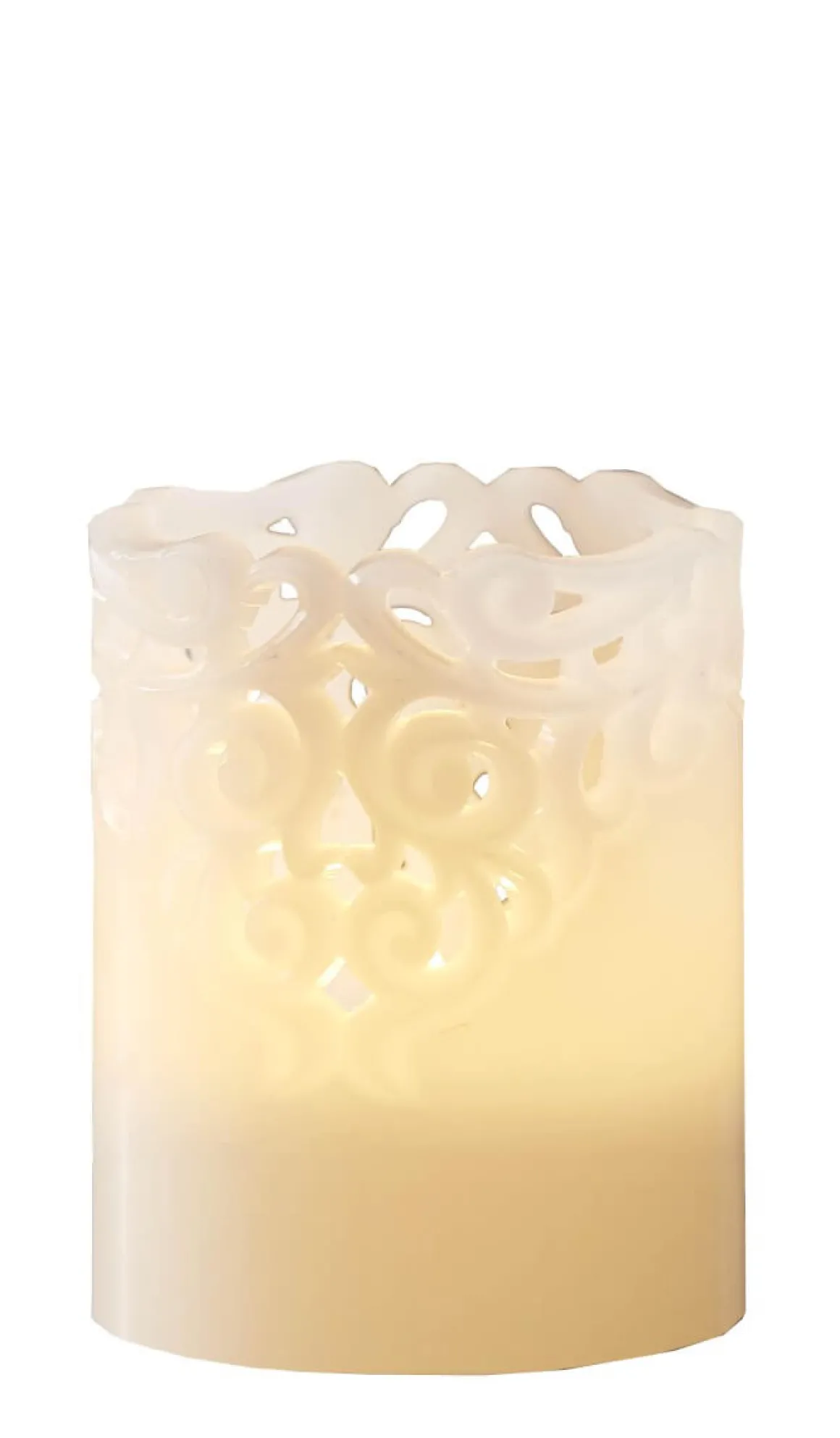 Ameeeeen så gulligt litet vaxljus med utskuret mönster. Ljuset styrs med batterier och en inbyggd timer som gör det lätt för dig att själv ställa in när du vill att det ska lysa. Perfekt för dig med småbarn och husdjur.