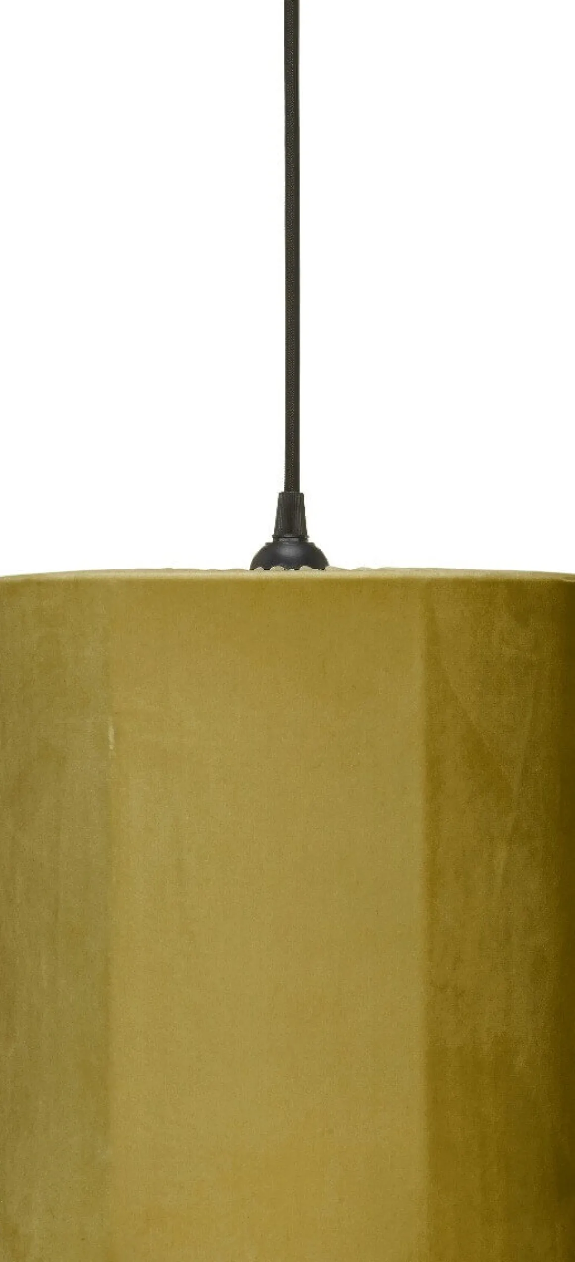 Classic cylinder är precis som namnet antyder en klassisk skärm i cylinderform från välkända PR-Home här i härligt senapsgult sammetstyg i storleken 24 cm.