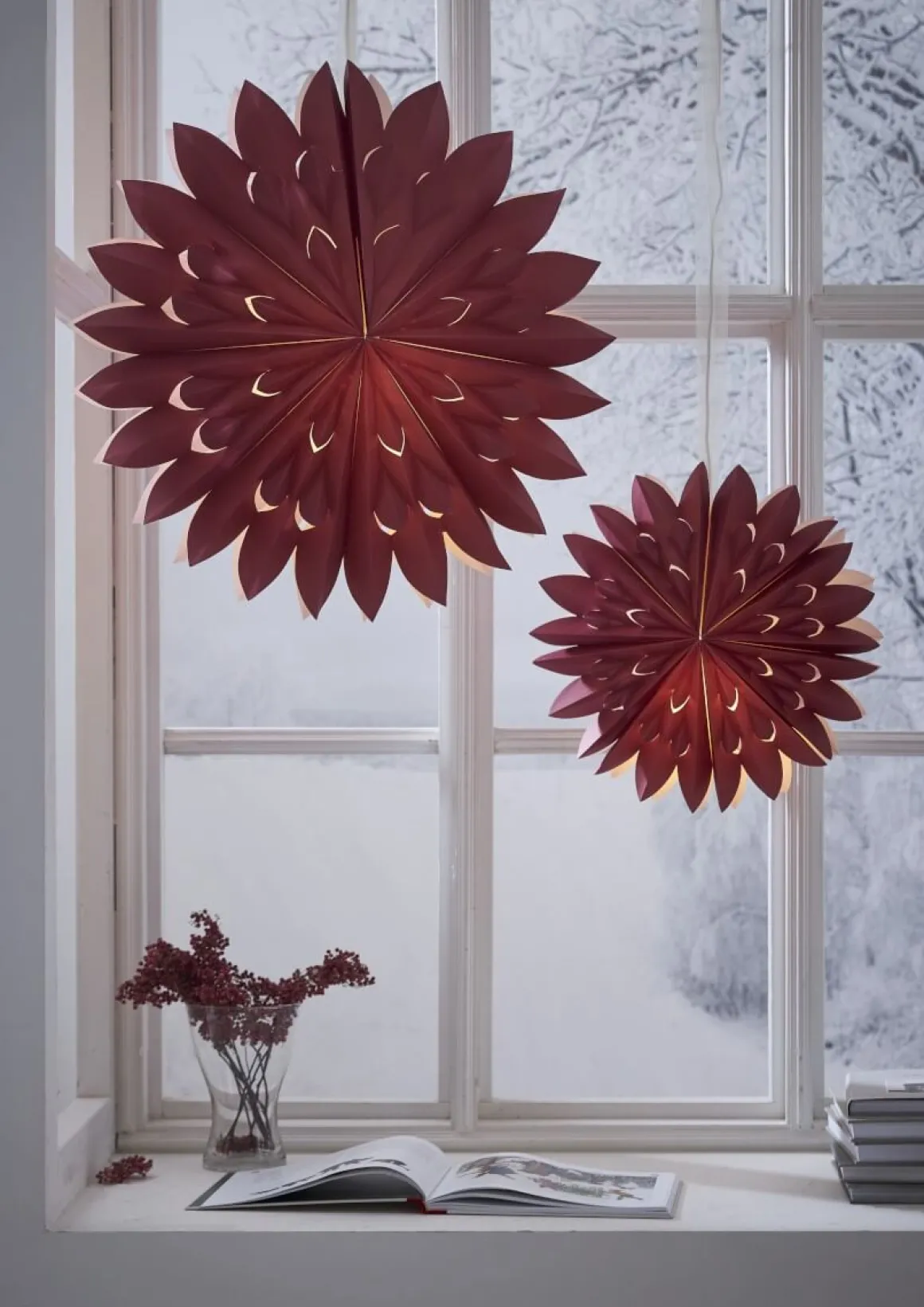 Stilfull röd pappersstjärna med en diameter på 40 cm från Star Trading. Ett elegant band ingår för att lättare kunna hänga upp stjärnan. Clipp sprider en härlig julstämning och ger hemmet den där speciella julkänslan. Stjärnan kan hängas både i fönster och mot en vägg. Glöm ej köpa till sladdställ och ljuskälla för belysning i stjärnan.