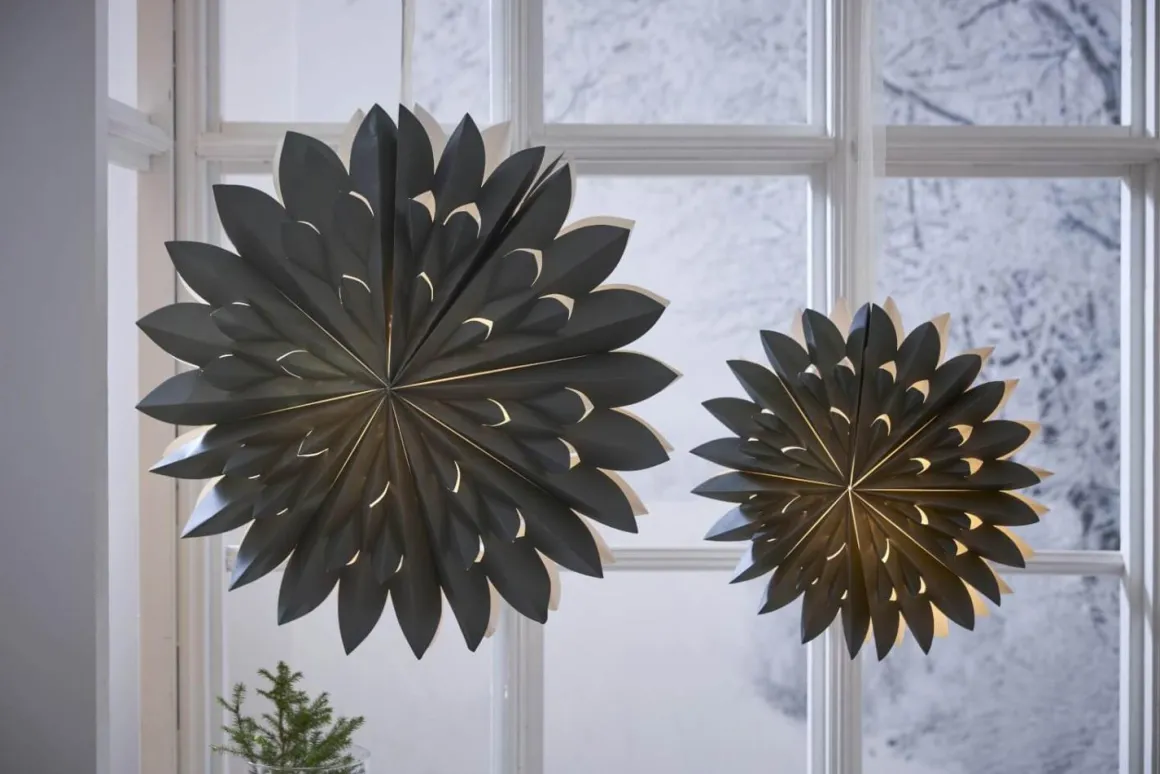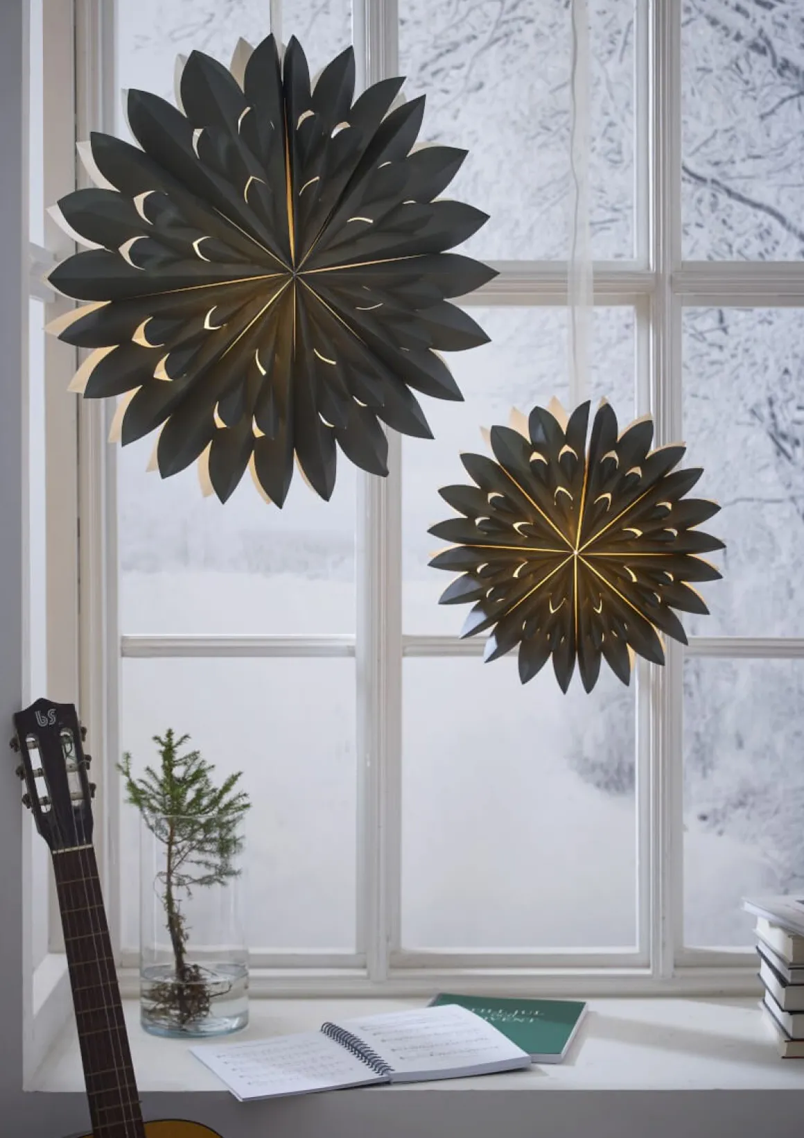 Stilfull Grön pappersstjärna med en diameter på 60 cm från Star Trading. Ett elegant band ingår för att lättare kunna hänga upp stjärnan. Clipp sprider en härlig julstämning och ger hemmet den där speciella julkänslan. Stjärnan kan hängas både i fönster och mot en vägg. Glöm ej köpa till sladdställ och ljuskälla för belysning i stjärnan.