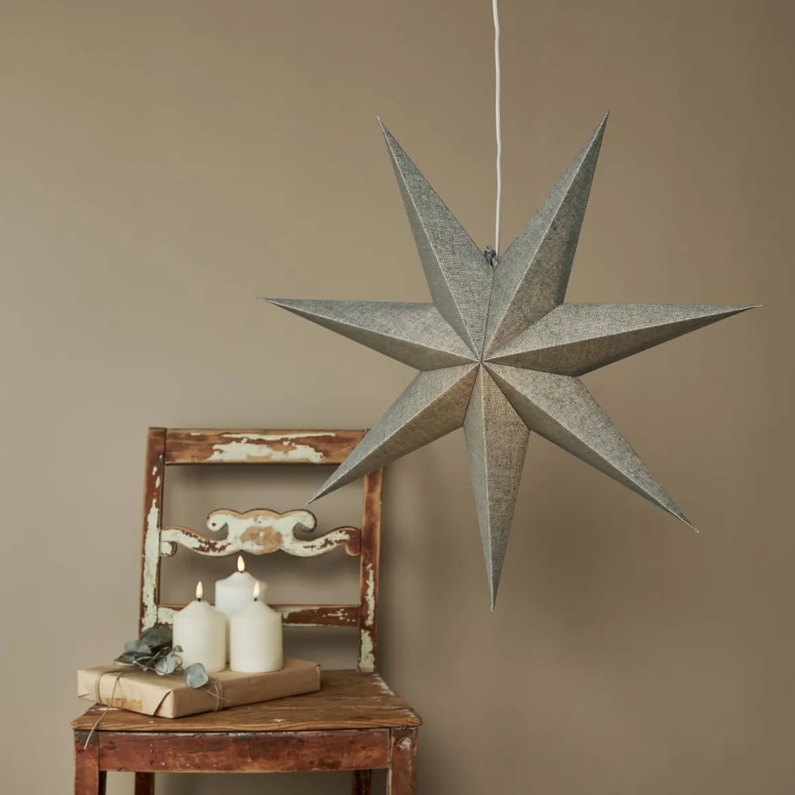 Pappersstjärna klädd med ljusgrönt tyg för den perfekta naturkänslan. Modern adventsstjärna från Star Trading att dekorera ett fönster eller varför inteluta den mot en vägg. Dekorera till advent och få en härlig julstämning.Sladdställ ingår ej.