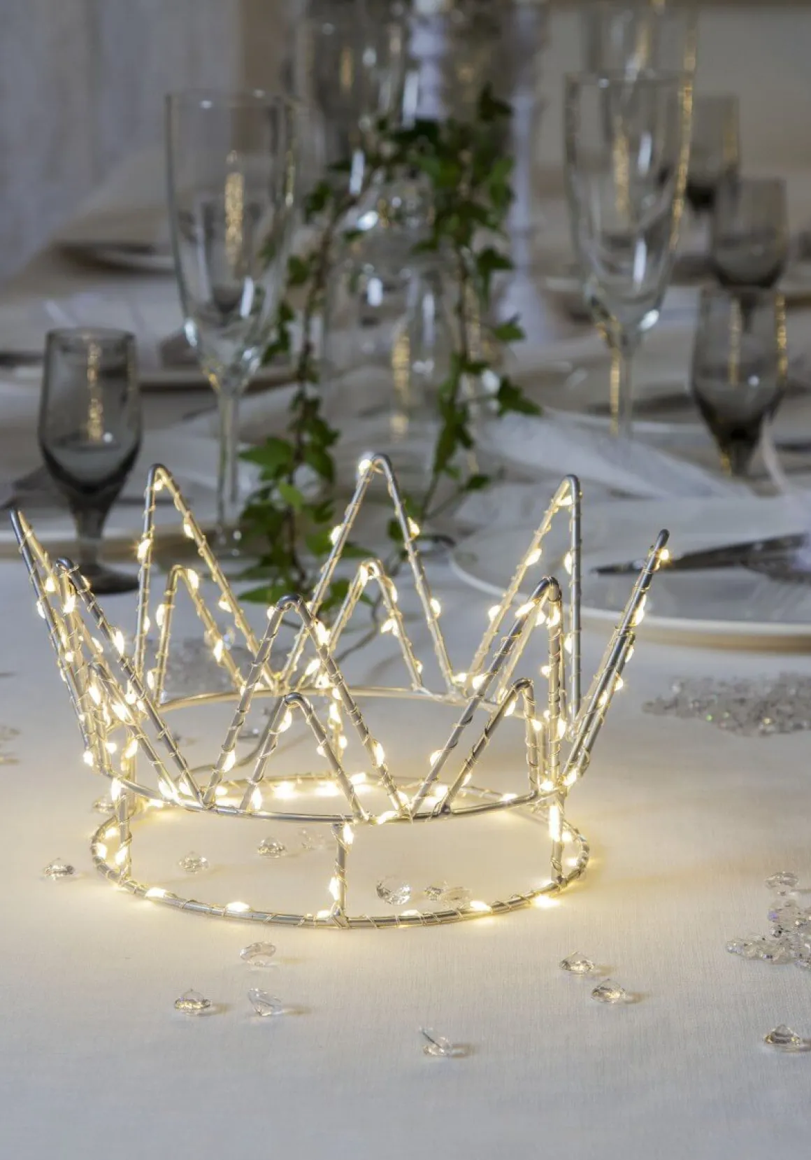 Så söt lite silverkrona att dekorera med på det dukade bordet, eller kanske på en byrå eller tv-bänk. Kronan drivs med batteri och har självklart en inbyggd timer så du enkelt kan välja när du vill att den ska lysa. Här ser du stora Crown på 22 cm.