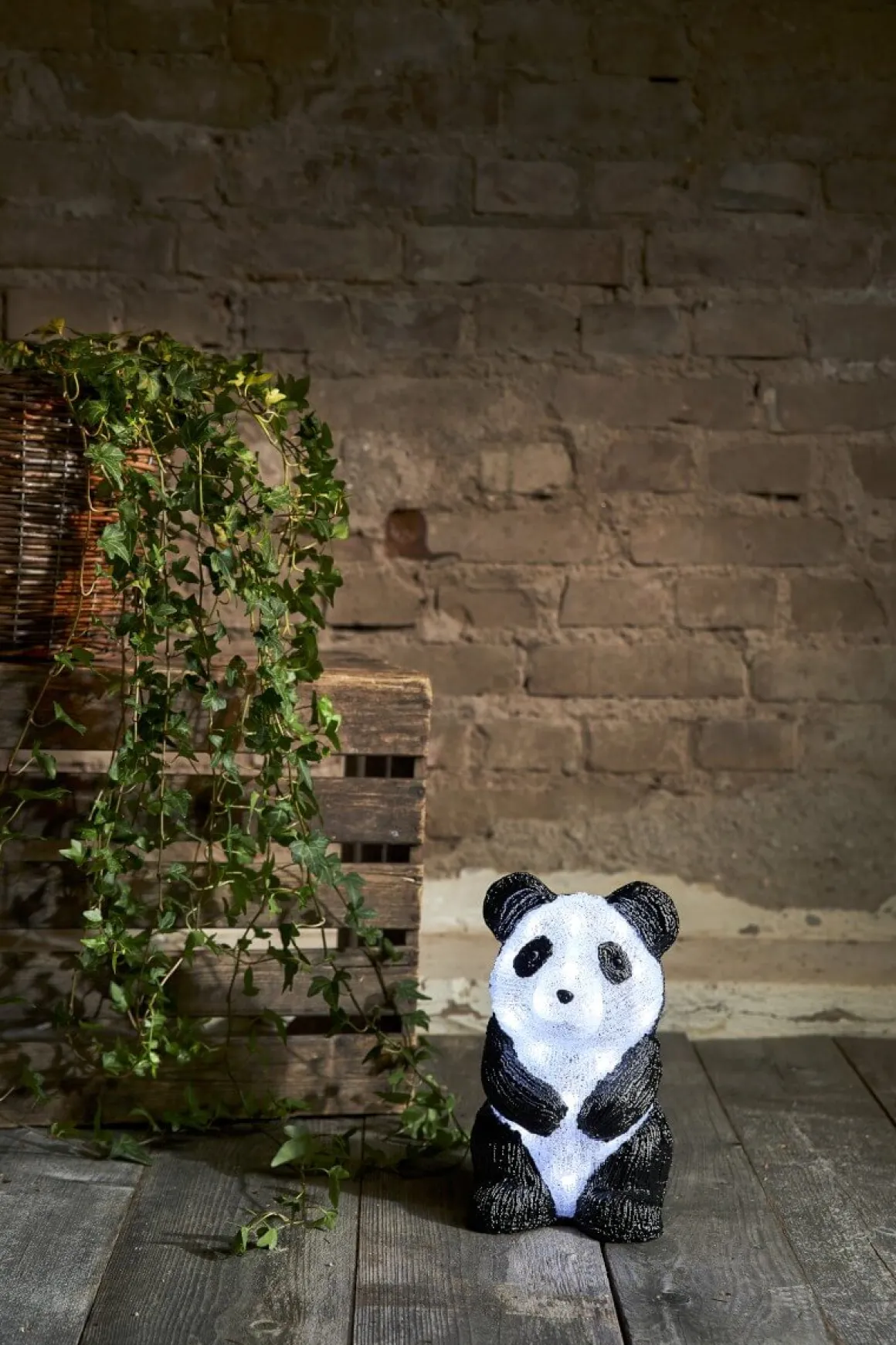Dekorationsfigur i form av en liten Panda för utomhusbruk och inomhusbruk. Läcker dekoration att ha i trädgården eller varför inte i entrén. Pandan har 20 stycken små LED-ljuskällor som ger ifrån sig ett fint och inbjudande sken.