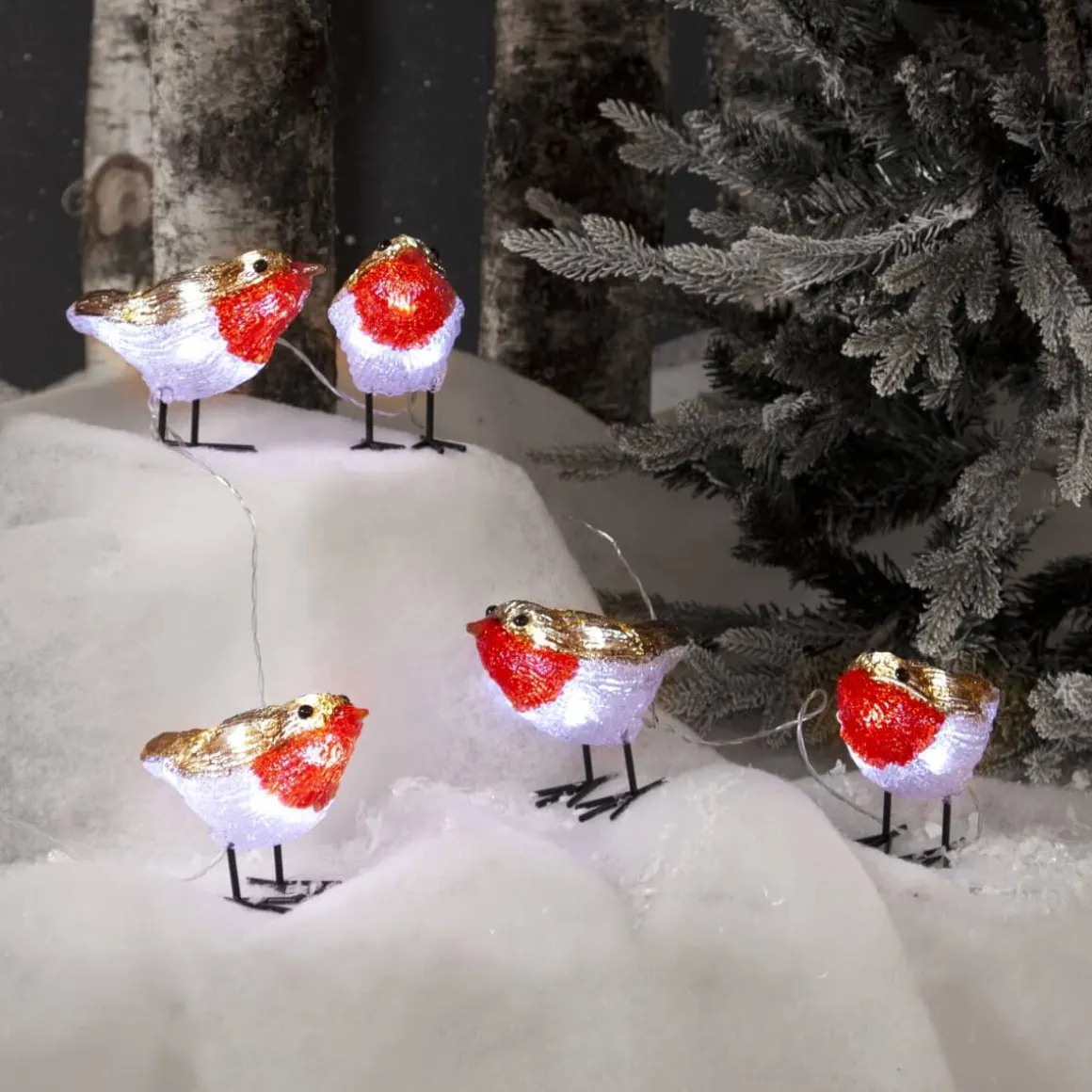Men gulle så söta små pippifåglar att dekorera med såväl inomhus som utomhus. Fåglarna har 8 små ljuskällor vardera som drivs med batterier. Självklart har även denna batteriprodukt timerfunktion.
