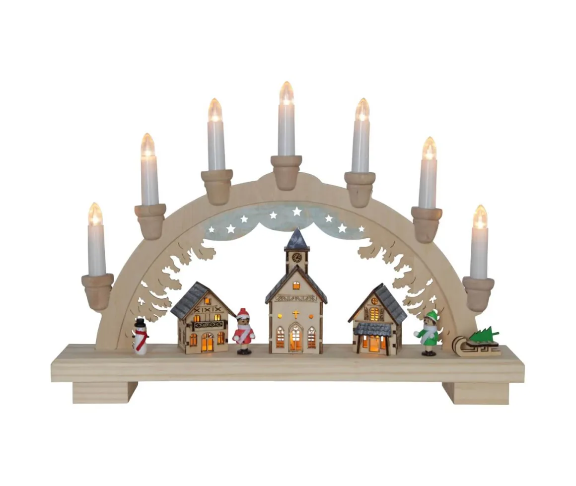 Batteridriven ljusstake fint dekorerad med juldetaljer. En härlig dekoration att placera på bordet. Skapar en mysig adventkänsla i hemmet med ett härligt sken.