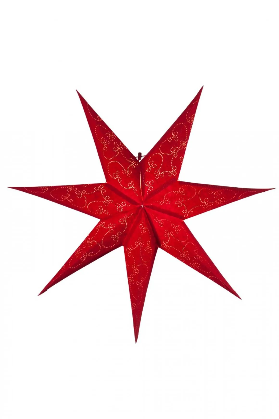 Lös pappstjärna med dekorativt mönster som är till för att hänga och skapa julstämmning i ditt hem, monteras enkelt på ett vanligt sladdställ.