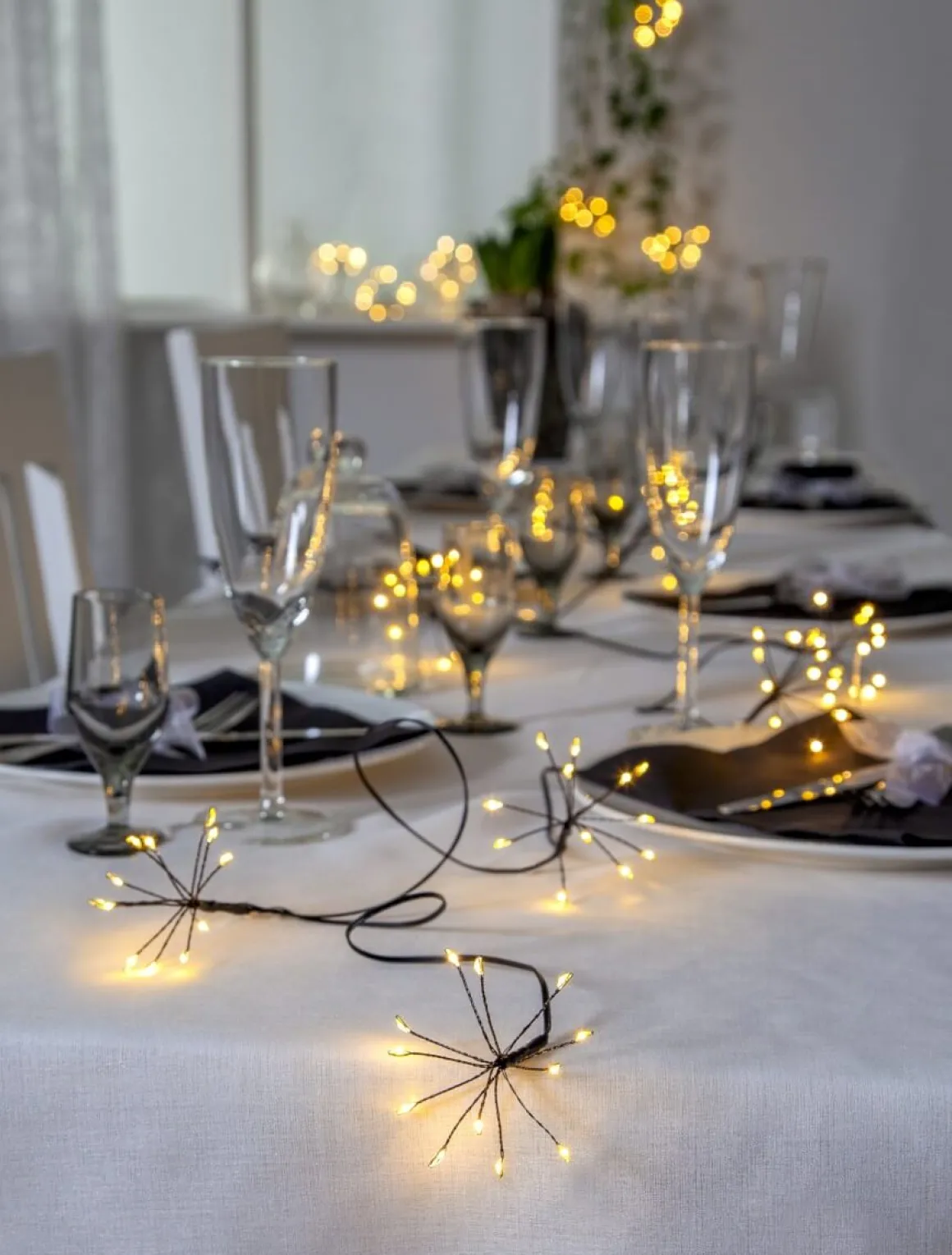 Vacker batteridriven ljusslinga med hela 96 varmvita LED dew drops fördelade på 8 små blombuketter. Kan användas vid diverse dekorationer, vid tex dukningar, blomsterarrangemang, julgranen och mycket mer. Batteriboxen är gjord för att klara utomhusbruk och har givetvis en inbyggd timer.