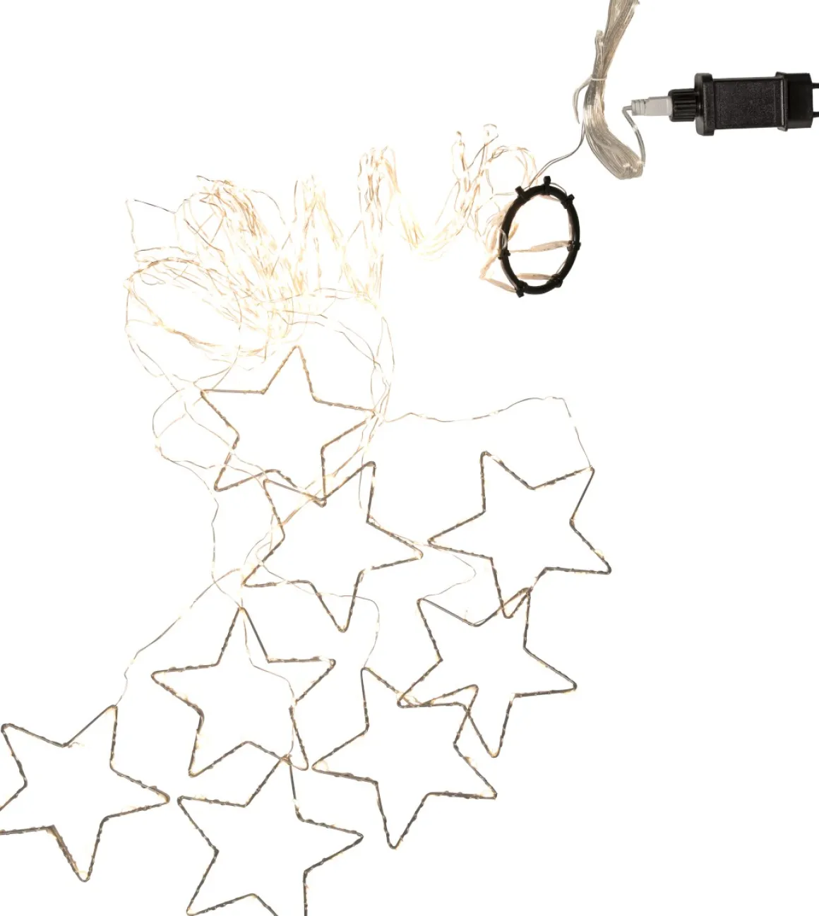 Julgransslinga i Dew Drop Led från Star Trading. Slingan har hela 384 små varmvita ljuskällor fördelade på 8 strängar i två olika längder med en söt liten stjärna i botten på varje slinga. Dewdrop slingan kommer med en anslutningskabel på 5 meter som gör att den passar i de flesta trädgårdar