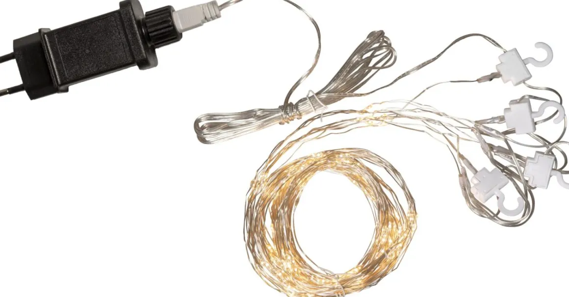 Underbar ljusgardin med populära dew drop för inomhusbruk. Ljusslingan har hela 200 varmvita LED-ljuskällor som avger ett vackert sken. Härlig dekoration att ha framme till vardags och fest. Gardin med 10 strängar, 1 meter bred och 2meter lång..