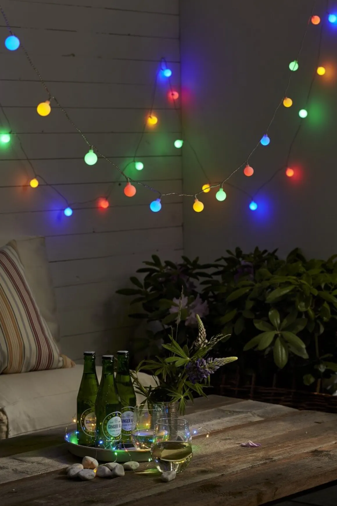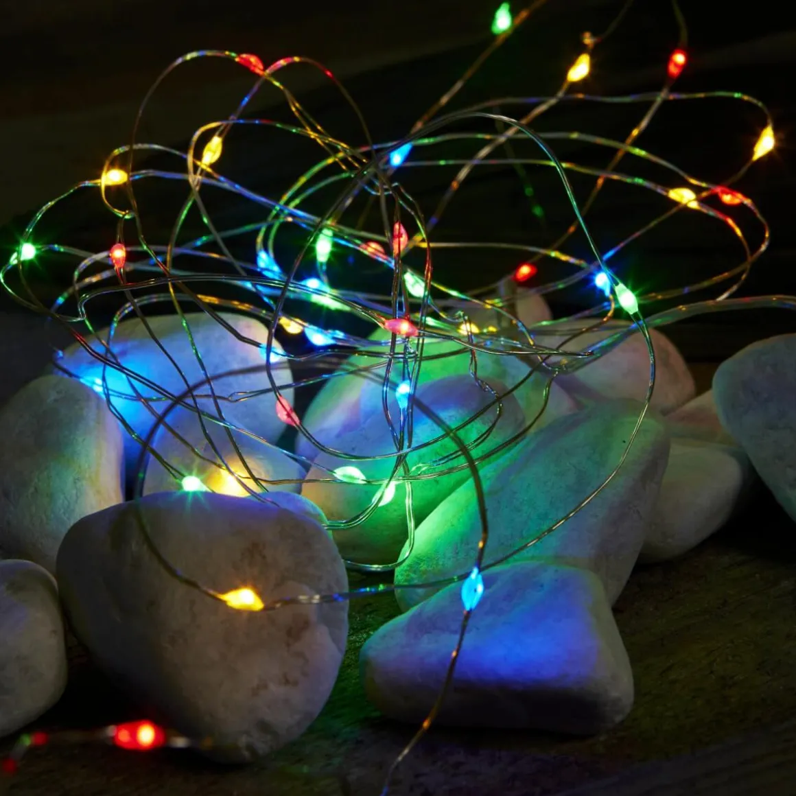 Läcker ljusslinga med 40 stycken multifärgade LED dew drops ljus. Kan användas vid diverse dekorationer, vid tex dukningar, blomsterarrangemang, i fönster, på väggen osv. Slingan har en inbyggd timer.