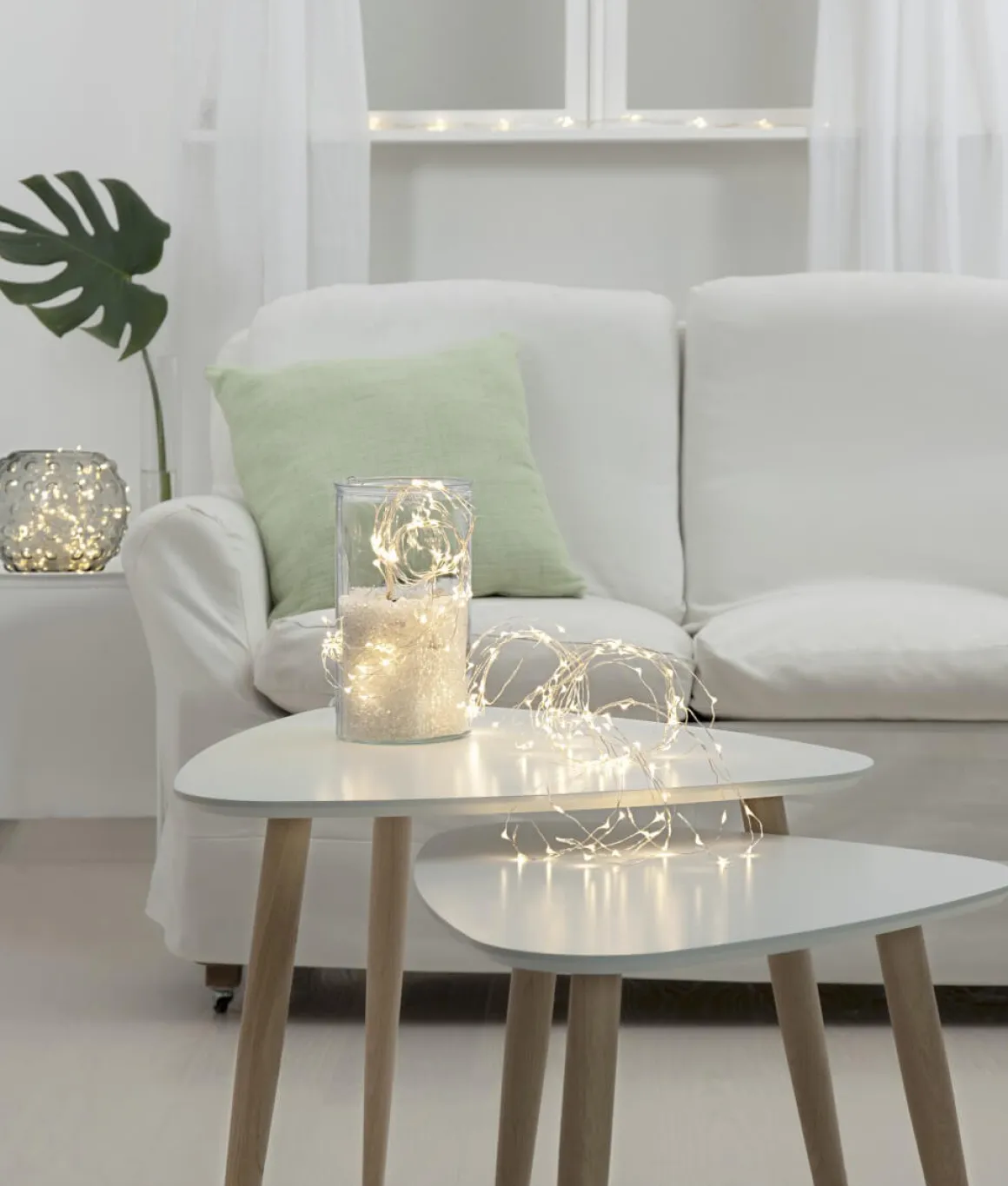 Knippe dewdrops led ljusslinga med80 st ljuspunkter i Daylight (dvs lite vitare sken än vanligt). ljuspunkter. Slingan är batteridriven och har silver metallkabel. Kan användas vid diverse dekorationer, vid tex dukningar, blomsterarrangemang, i fönster, på väggen osv.