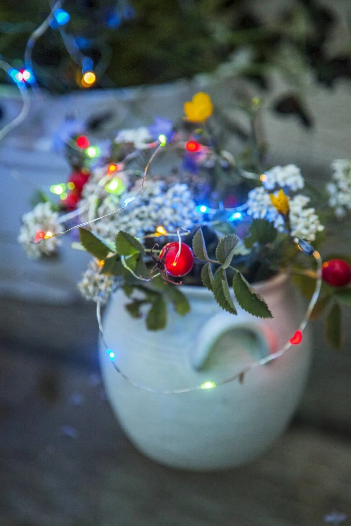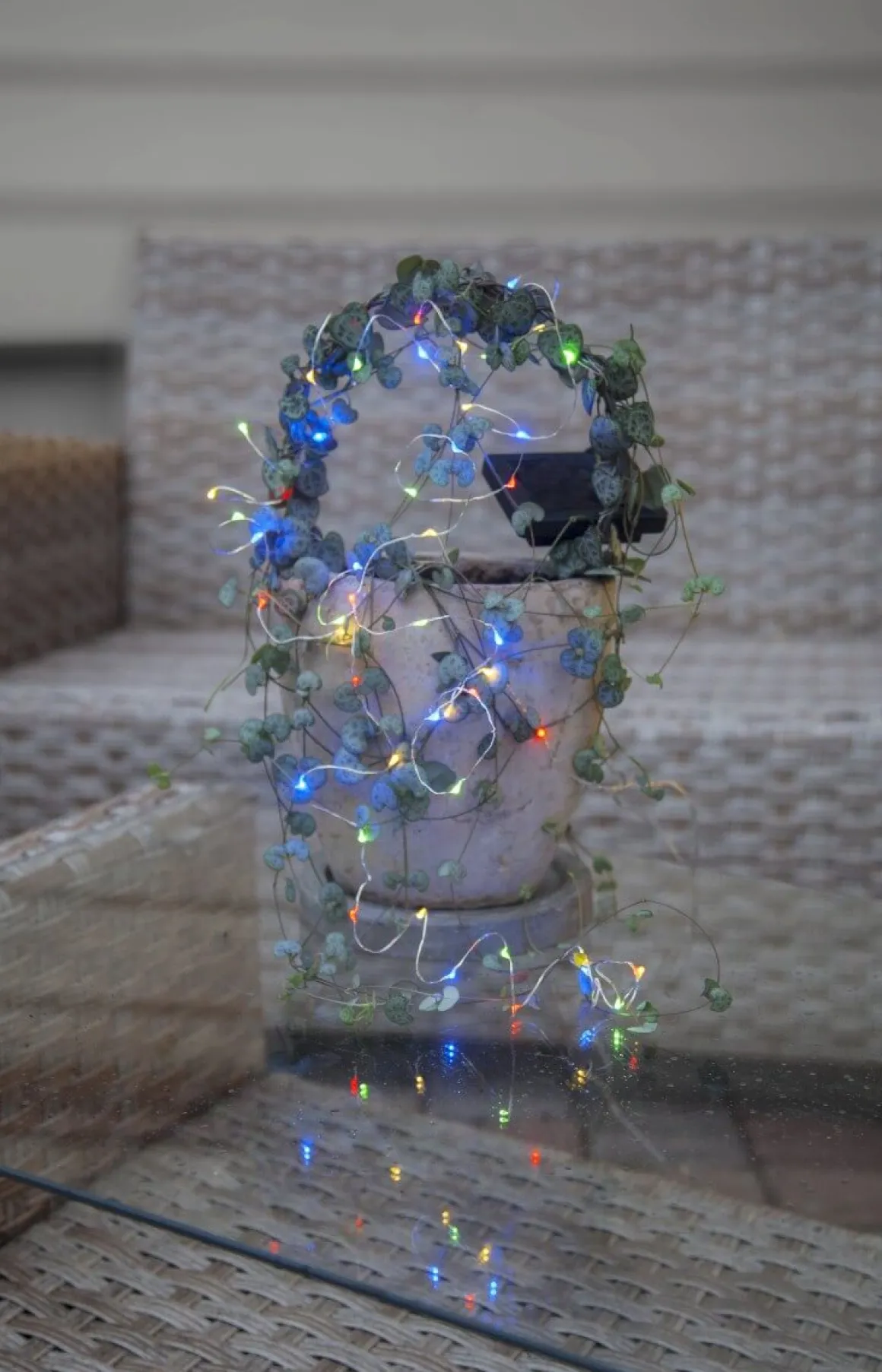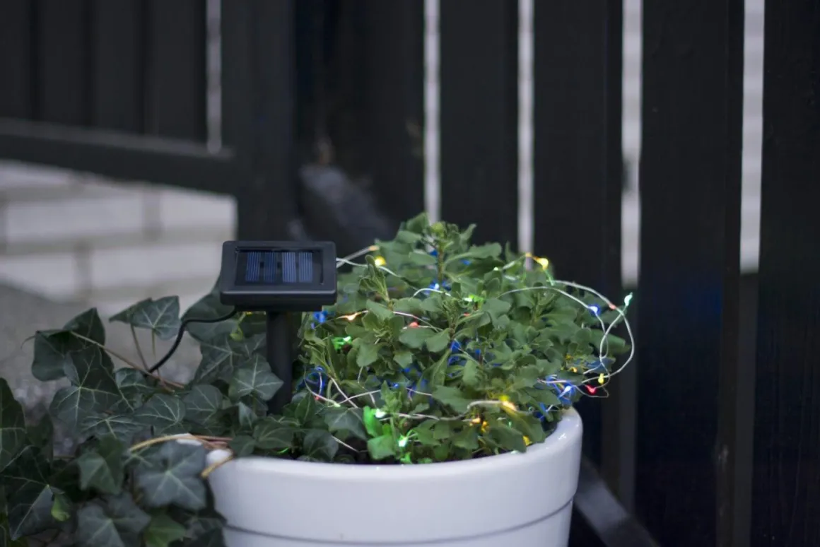 Härlig solcellsdriven Dewdrop slinga med multifärgade lampor, lamporna laddas upp under dagen och lyser så festligt när mörkret kryper på.