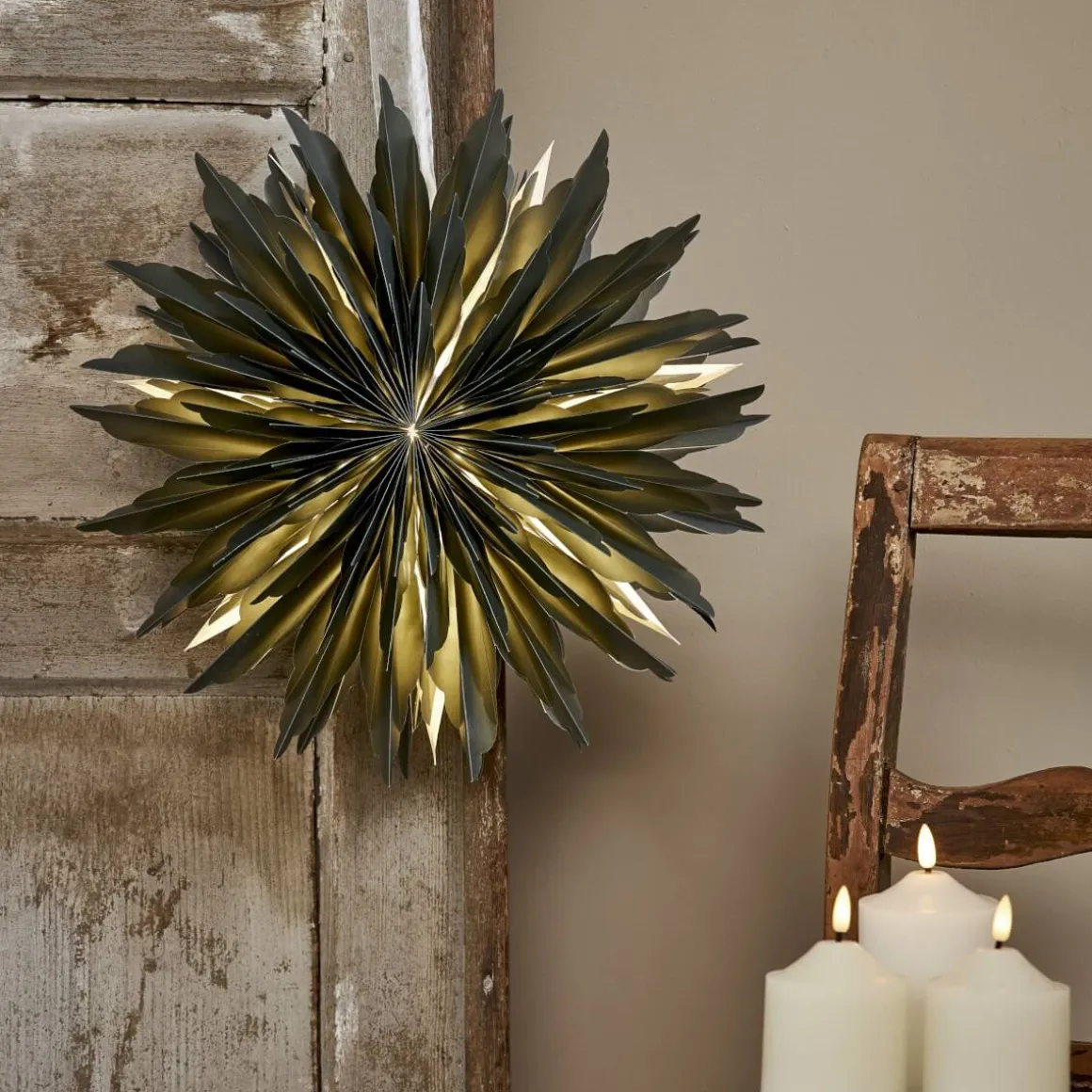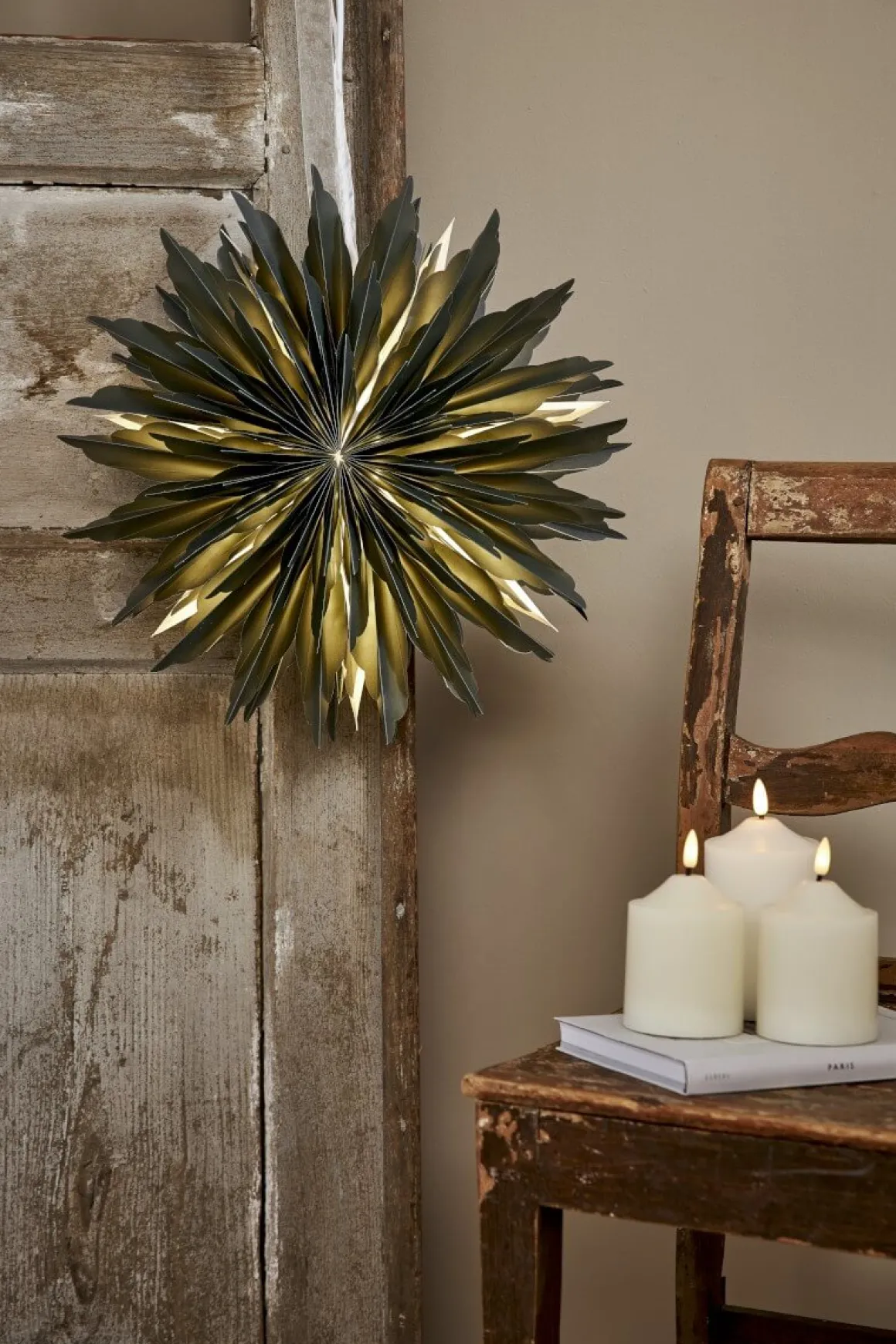 Wow wow wow så vacker och dekorativ stjärna i semitransparent grönt papper som ger den en skir och lyxig känsla. Dis passar perfekt att hänga i fönstret eller varför inte mot en vägg för att skapa den där härliga julkänslan. Sladdställ och ljuskälla köpes separat.
