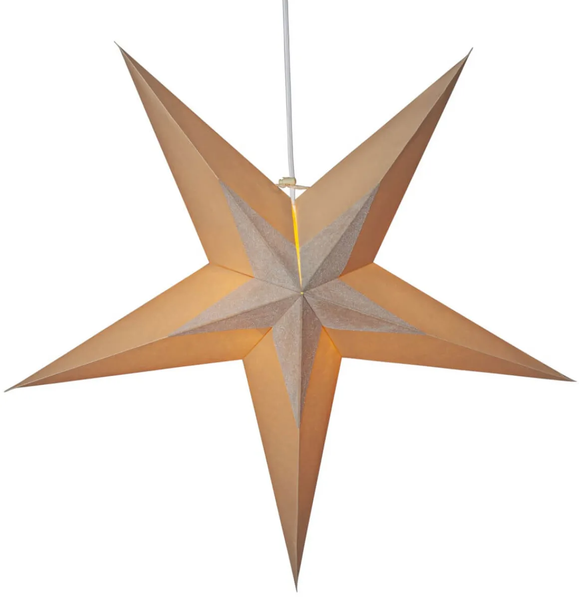 Stilren lös pappersstjärna från Star Trading i beige, mitten av stjärnan är dekorerad med en stjärna i beige sammet. Modern och elegant känsla, dekorera hängande eller stående, med eller utan ljus.