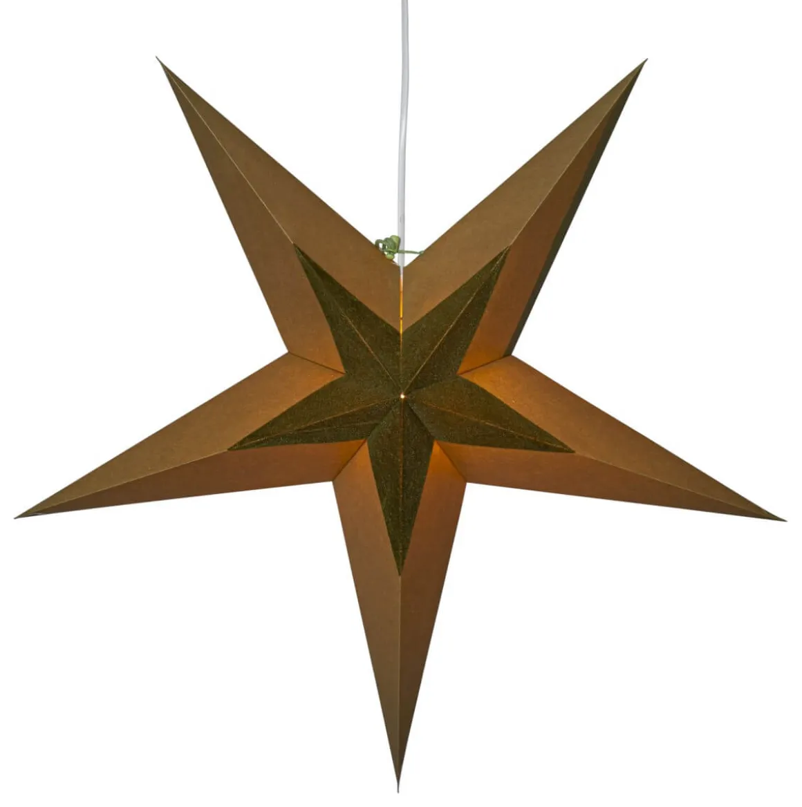 Stilren lös pappersstjärna i grönt från Star Trading. Mitten av stjärnan är dekorerad med en stjärna i grön sammet. Modern och elegant känsla, dekorera hängande eller stående, med eller utan ljus.