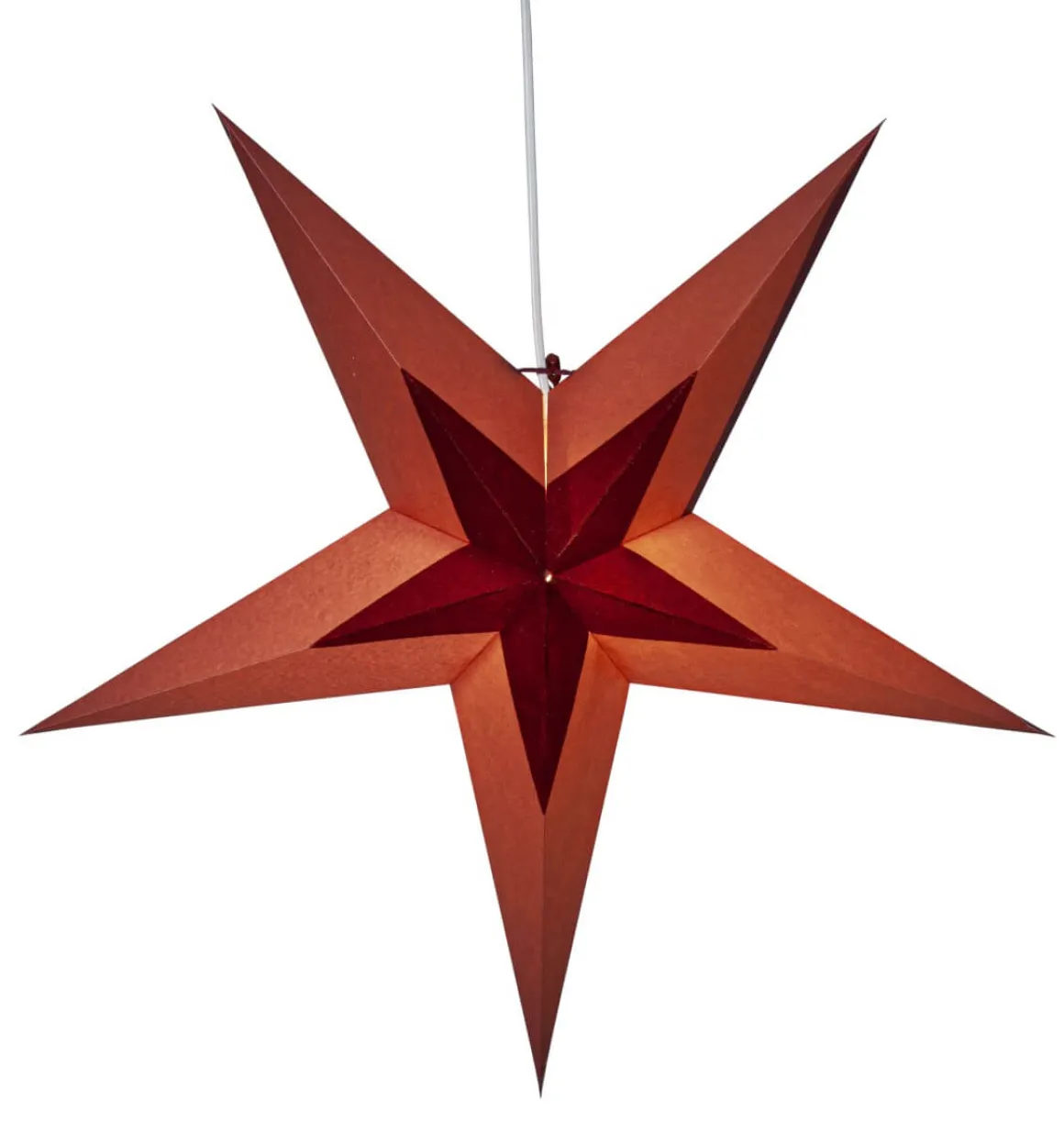 Stilren lös pappersstjärna i röd från Star Trading. Mitten av stjärnan är dekorerad med en stjärna i röd sammet. Modern och elegant känsla, dekorera hängande eller stående, med eller utan ljus.