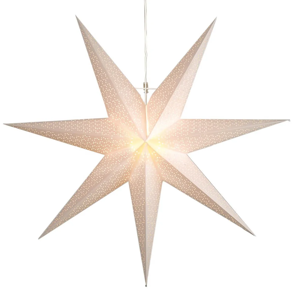 Läckert mönstrad pappersstjärna från Star Trading. Fin stjärna att dekorera med för att komma i den rätta julstämningen, Dot finns i 3 färger och 3 storlekar, här ser du den stora på 100cm i vitt. Sladdställ ingår.