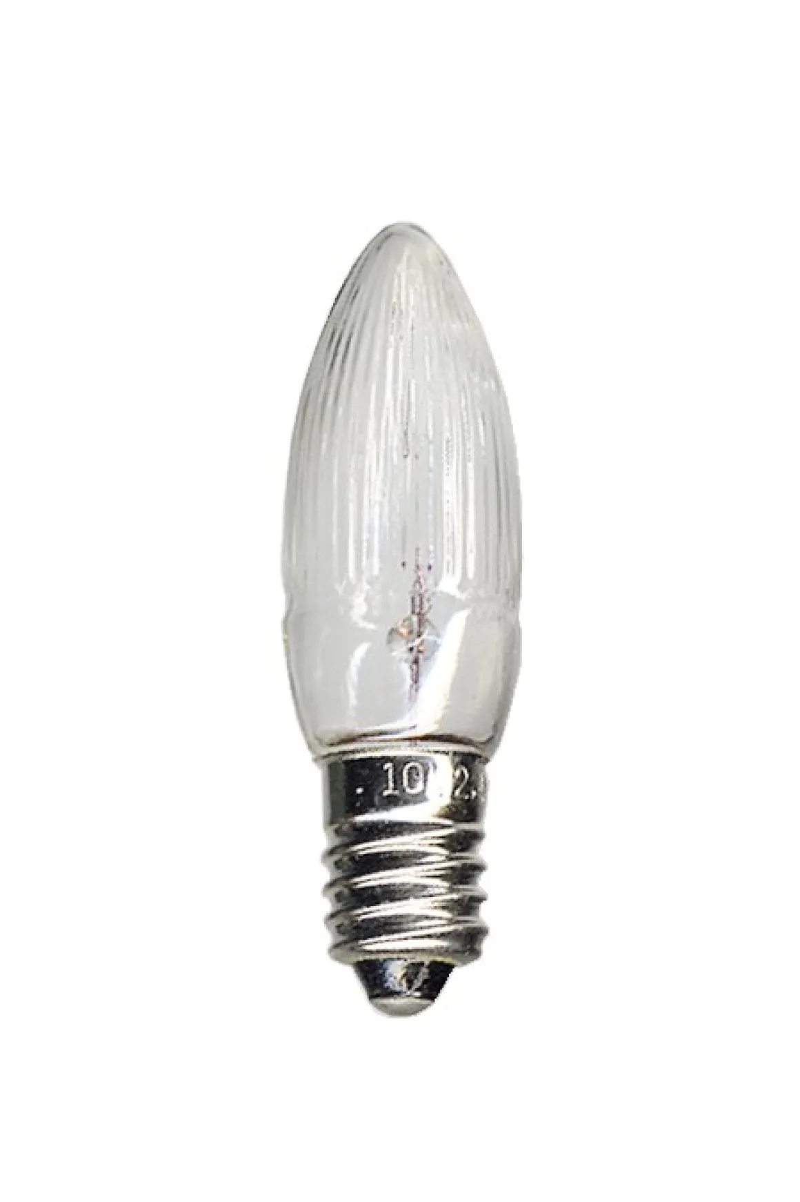3-pack topplampor med E10 sockel och klart glas. Användningsområdet är inomhus.