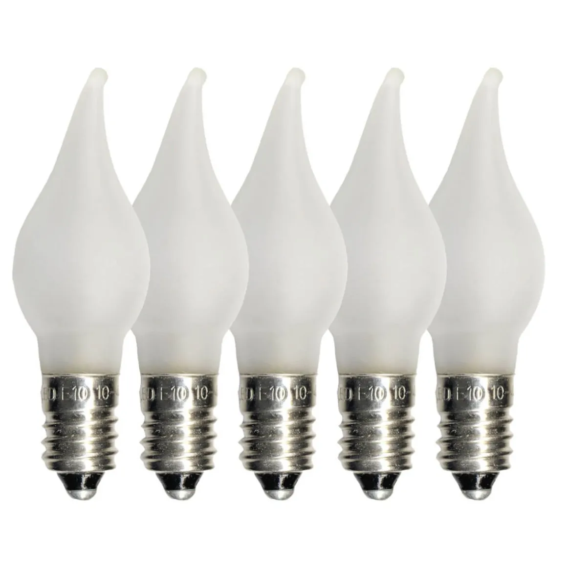 Frostade universal-LED reservlampor i 3-pack. Ljuskällorna som ofta kallas topplampa har E10 sockel och är 10-55V. Denna ljuskälla passar produkter som har mellan 4 – 25 ljuskällor.