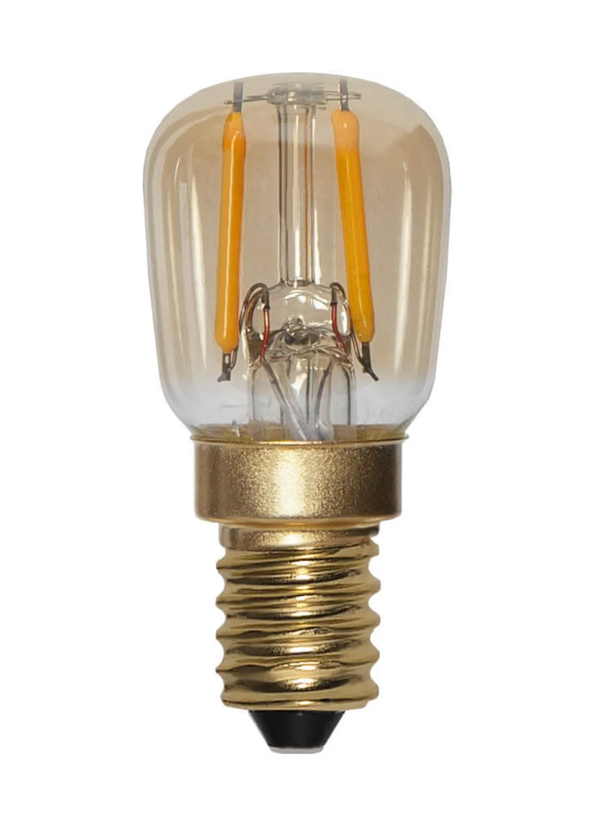 Päronlampa med amberfärgat glas och E14-sockel. Den har låg lumen på endast 30 och en varm mysig färgtemperatur på 2000k perfekt som mysbelysning.