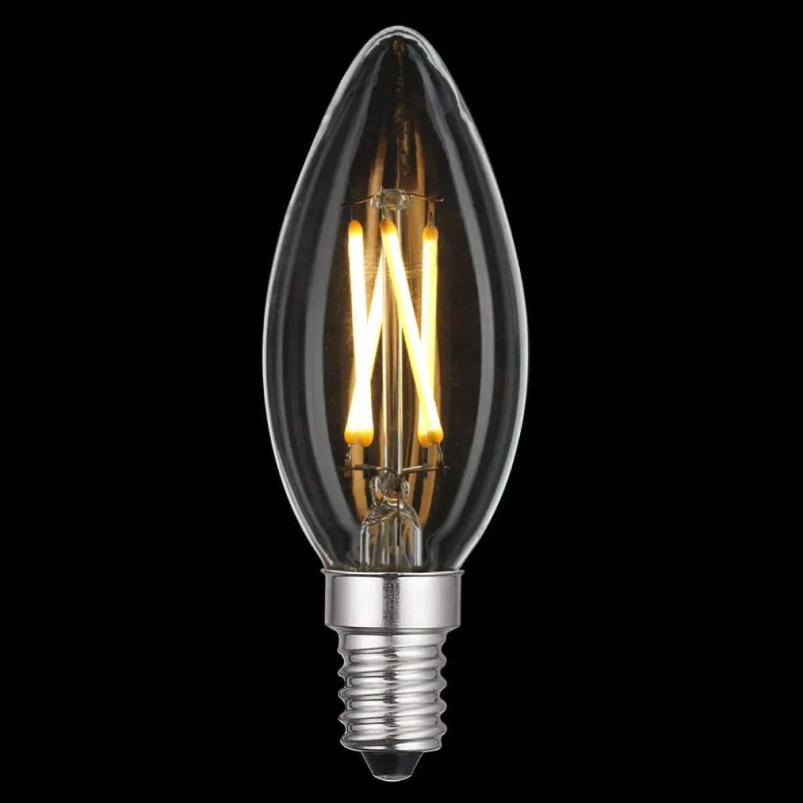 En standard LED från Unison som lyser precis som de ”gamla hederliga glödlamporna”. Ett litet budget alternativ men givetvis med 2 års garanti! Här ser du classic kronljus klarglas med E14 sockel på 4 watt och 400 lumen.