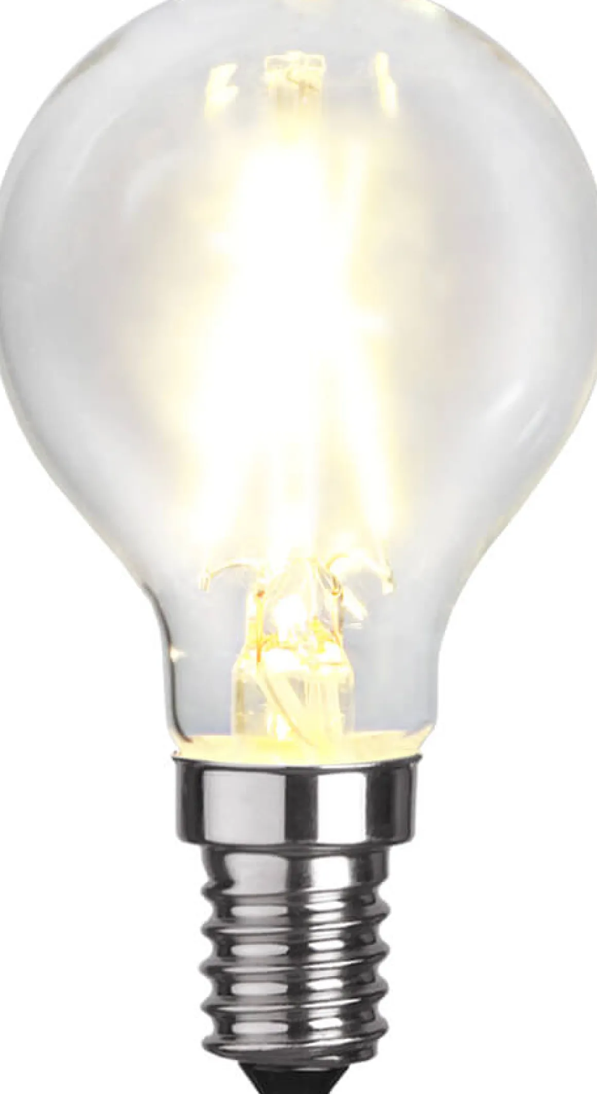 LED-lampa med E14-sockel. Färgtemperaturen är på 2700k och ljusflödet är på 150 lumen.