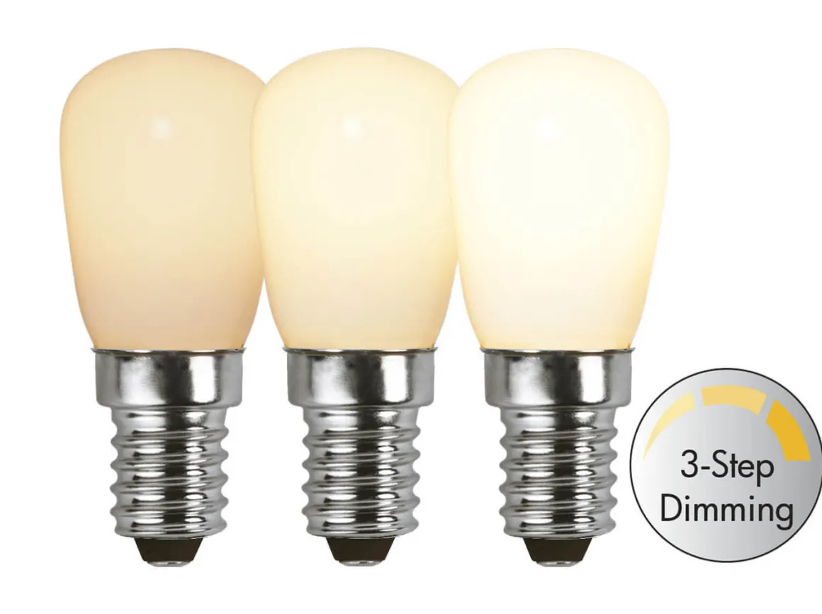Så himla smart Led lampa med 3-stegs klickdimring! Ljusstyrkan ändrar du enkelt genom att slå av och på strömbrytaren. Välj mellan 50lm, 80lm eller 150lm. Ljusfärgen är härligt varmvita 2700K och den har E14-sockel. Startar alltid på lägsta ljusstyrka.