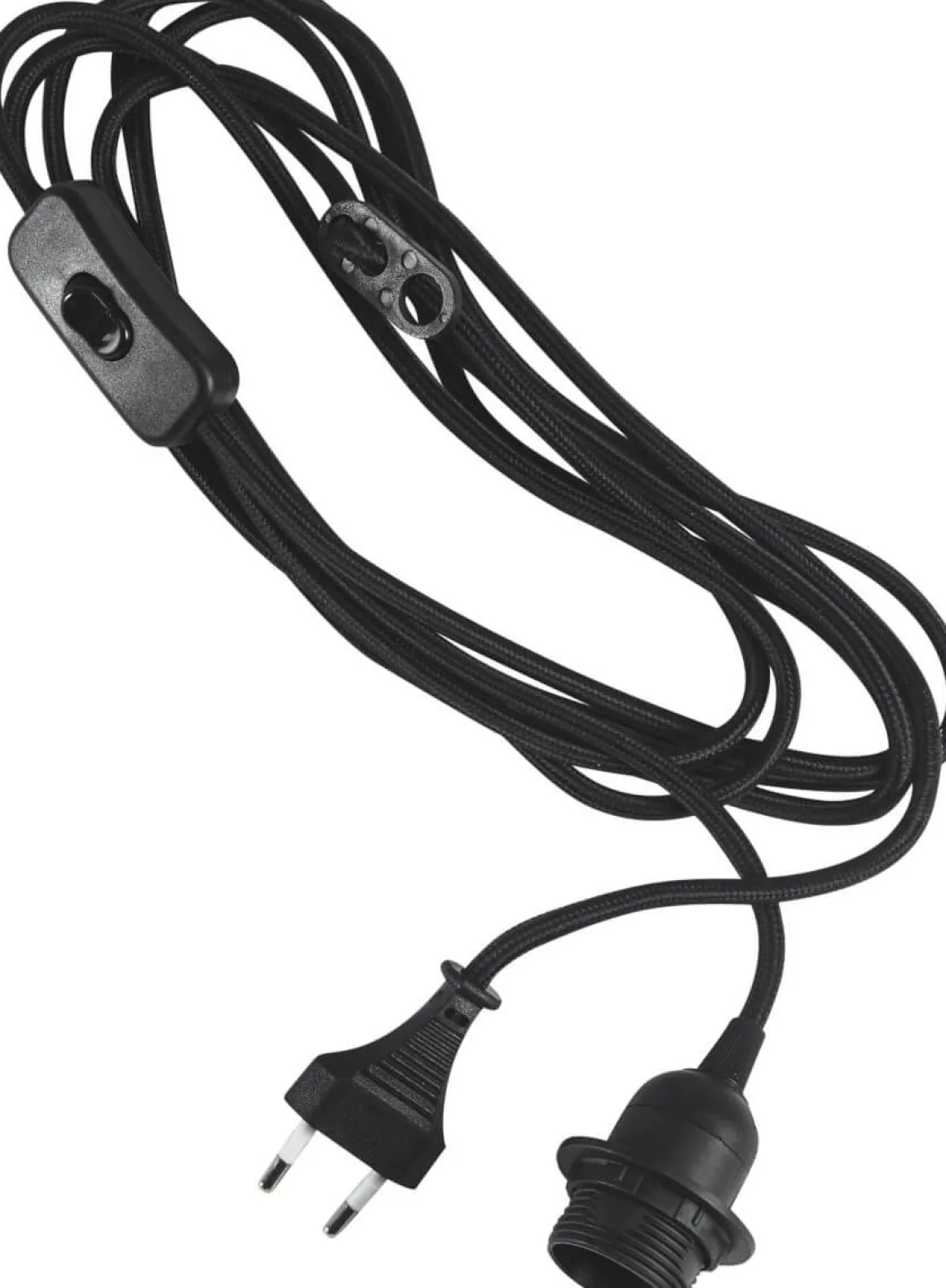 Sladdställ med 3,5 meter textilsladd med brytare och väggkontakt.