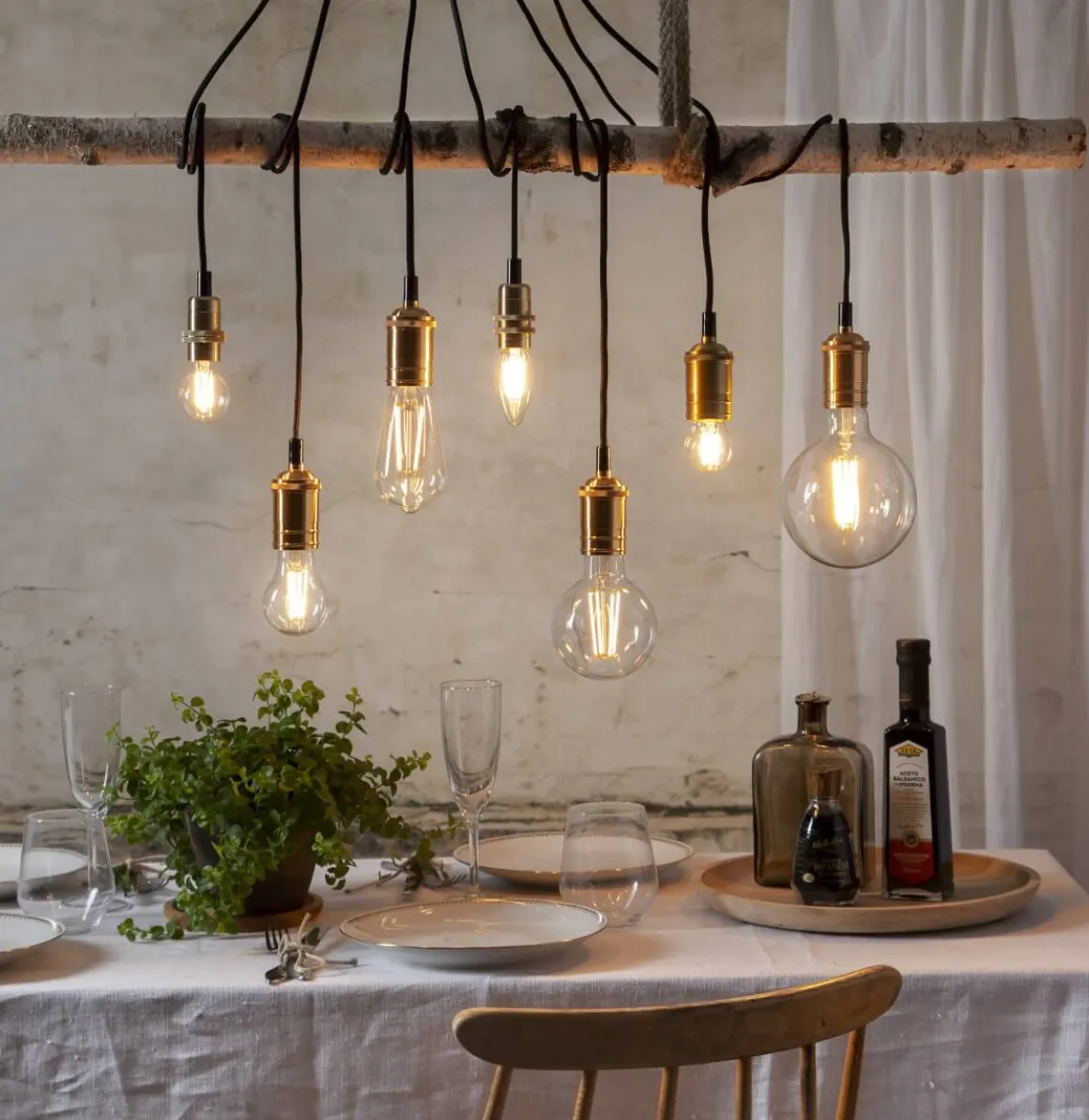 Härligt robust sladdställ i mässing med svart textilsladd från Star Trading. Kombinera med en läcker LED ljuskälla av eget val.