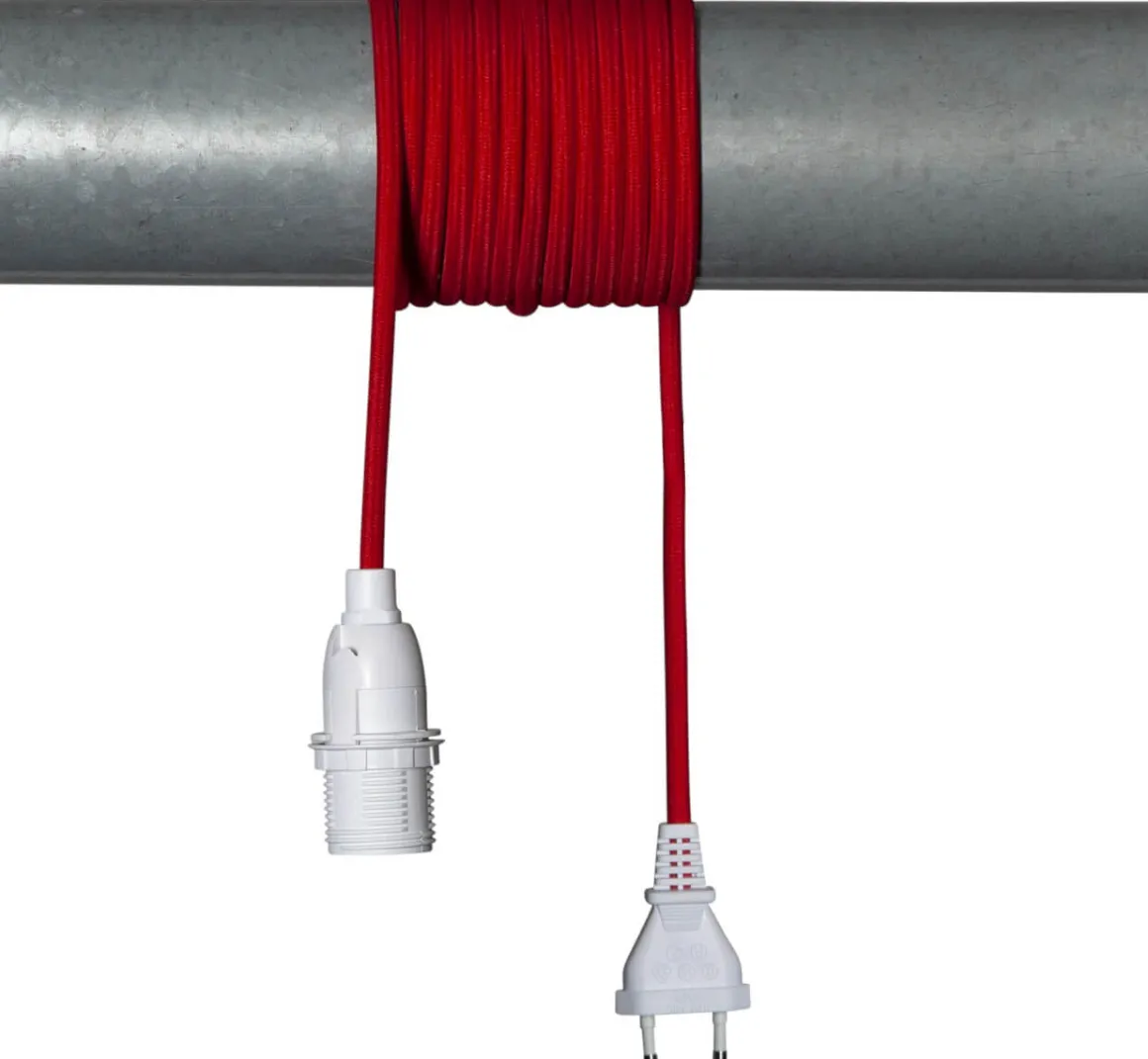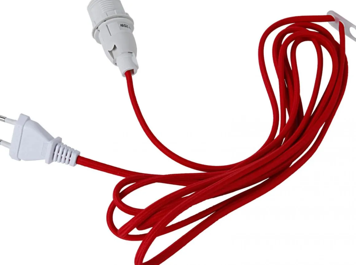 Sladdställ med textilöverdrag från Star Trading i färgen röd. Sladden är hela 3,5m med vanlig väggkontakt. Detta upphänget passar alldeles utmärkt till julens alla läckra julstjärnor.